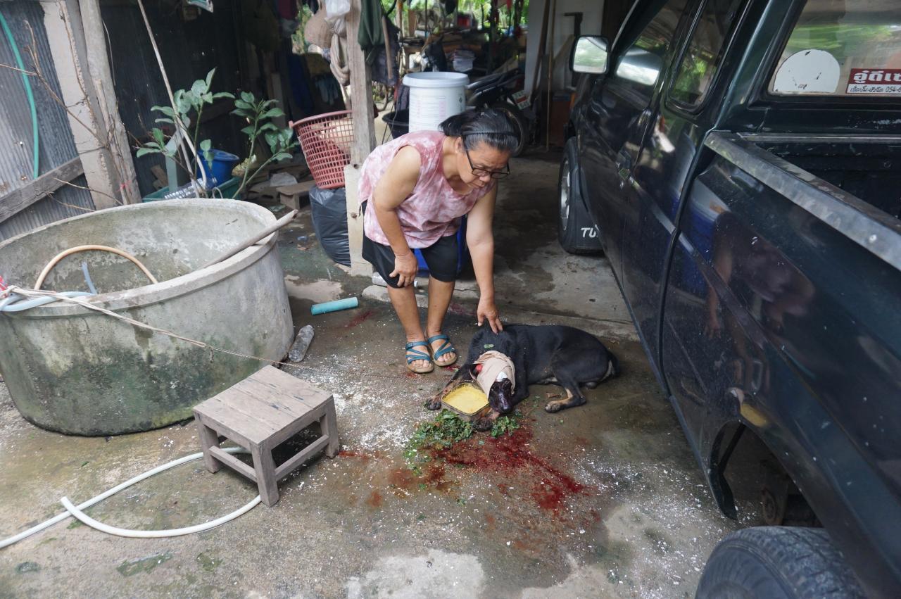 เมื่อเวลา 08.00 น. วันที่ 31 ส.ค.63 ขณะที่ นางสุมาลี ศรีใจวงศ์ อายุ 63 ปี บ้านเลขที่ 201/3 หมู่ 5 บ้านม่อนโตนห้วยกูด ต.เด่นชัย อ.เด่นชัย จ.แพร่ กลับมาจากตลาดมาถึงหน้าบ้านเห็นรอยเลือดเป็นทางยาวมาจากถนนเข้ามาในบ้าน จึงสงสัยว่า เป็นรอยเลือดอะไร ระหว่างนั้นมีเพื่อบ้านมาบอกว่าให้ไปดูสุนัขที่เลี้ยงไว้เลยว่าอยู่ไหน เมื่อเธอเข้าไปในบ้าน พบว่าสุนัขที่เธอเลี้ยงไว้ ชื่อ เจ้าสิงห์ เพศผู้ อายุประมาณ 10 เดือน มีสภาพถูกมีดพร้าฟันที่หน้าผาก เลือดพุ่งออกจากแผลเป็นที่น่าสงสาร โดยไม่ทราบว่าใครเป็นคนก่อเหตุ