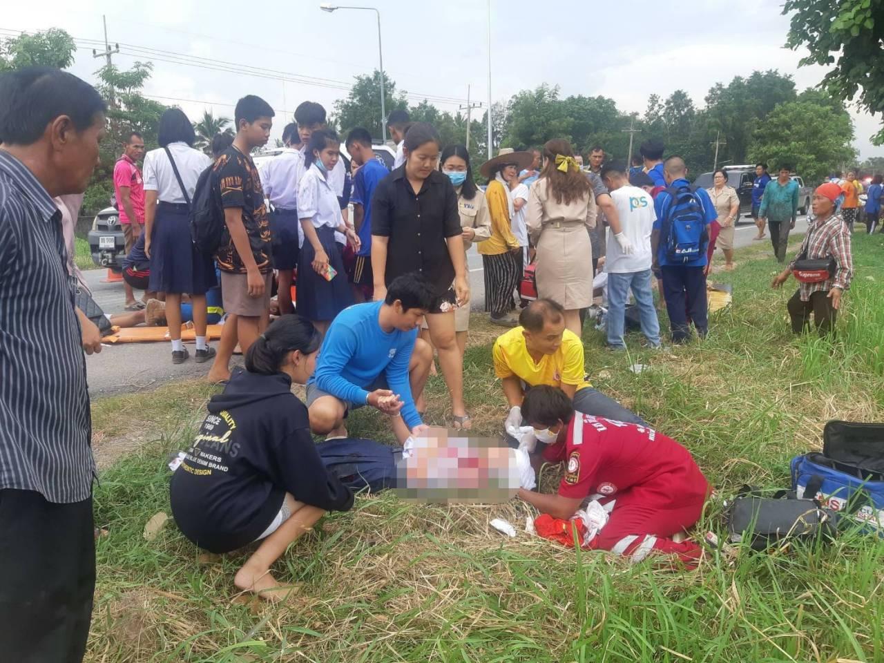สำหรับนักเรียนที่โดยสารมากับรถกระบะ ทั้งหมดเป็นนักเรียนโรงเรียนหนองพระพิทยา ระดับชั้นมัธยมศึกษา และมีบาดเจ็บเล็กน้อยอีก 3 ราย อยู่ในที่เกิดเหตุพร้อมกับเพื่อนๆ นักเรียนที่ไม่ได้รับบาดเจ็บอีก 9 คน ผู้ปกครองได้เดินทางมารับตัวกลับบ้านเรียบร้อยแล้ว