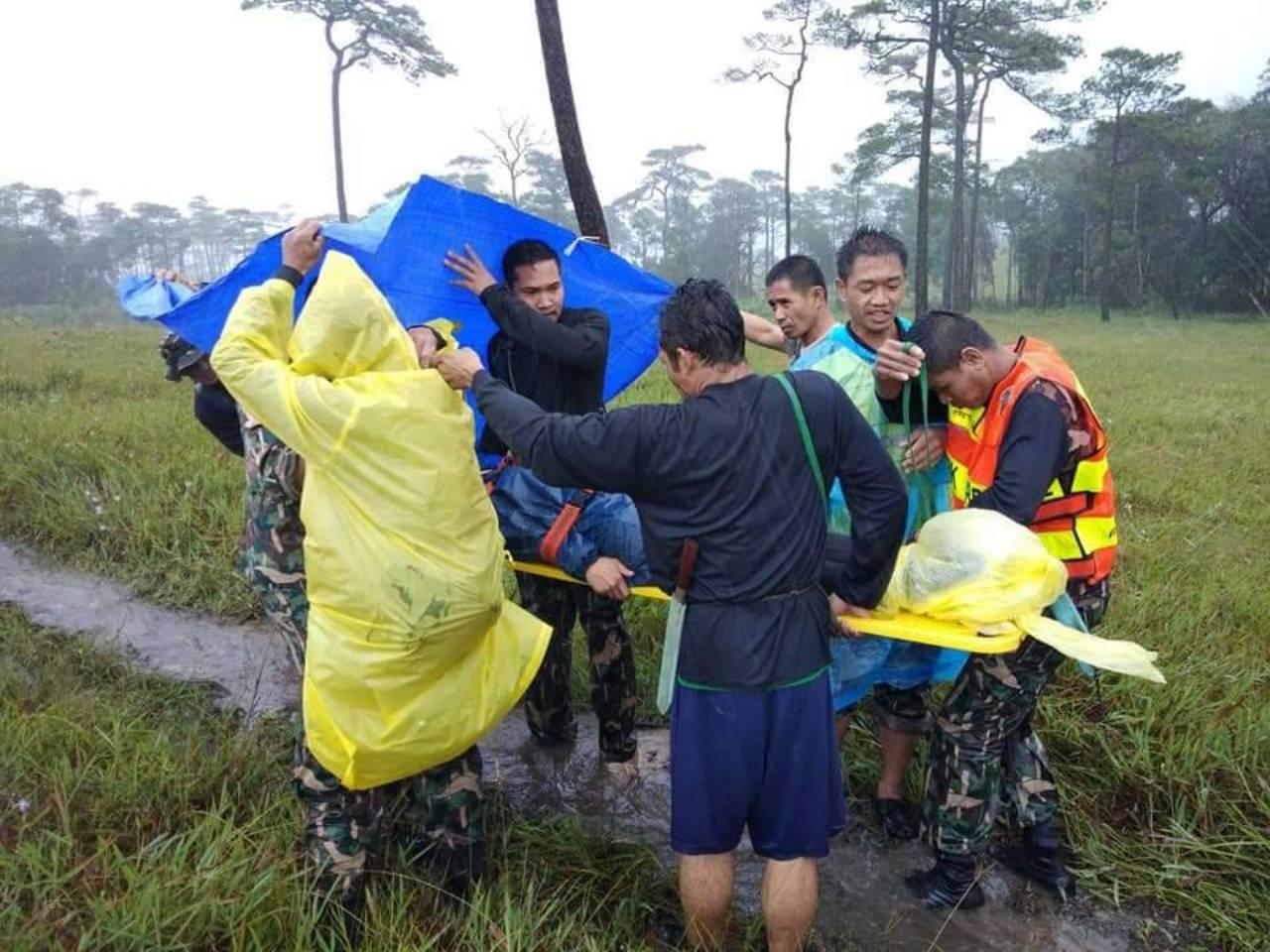 จากเหตุการณ์ดังกล่าว ส่งผลให้นักท่องเที่ยวที่กางเต็นท์พักแรมอยู่บนลานสนภูสอยดาว ได้รับบาดเจ็บจำนวน 2 คน ทางอุทยานฯ จึงแจ้งให้นักท่องเที่ยวจำนวน 265 คน ออกจากพื้นที่อย่างเร่งด่วน โดยมีเจ้าหน้าที่กระจายกำลังพลประจำจุดต่างๆ ตลอดเส้นทางเดินเท้าที่เป็นจุดเสี่ยงทั้งตัด ทอน และเคลื่อนย้ายต้นไม้ที่ล้มขวางเส้นทางออก เพื่อช่วยเหลือและอำนวยความสะดวกแก่นักท่องเที่ยวระหว่างเดินเท้ากลับลงมาจากลานสนภูสอยดาว โดยระหว่างทางเดินลงจากลานสน มีนักท่องเที่ยวได้รับบาดเจ็บจากการลื่นล้ม จำนวน 3 คน โดยเจ้าหน้าที่ได้ดำเนินการช่วยเหลือและปฐมพยาบาลในเบื้องต้น