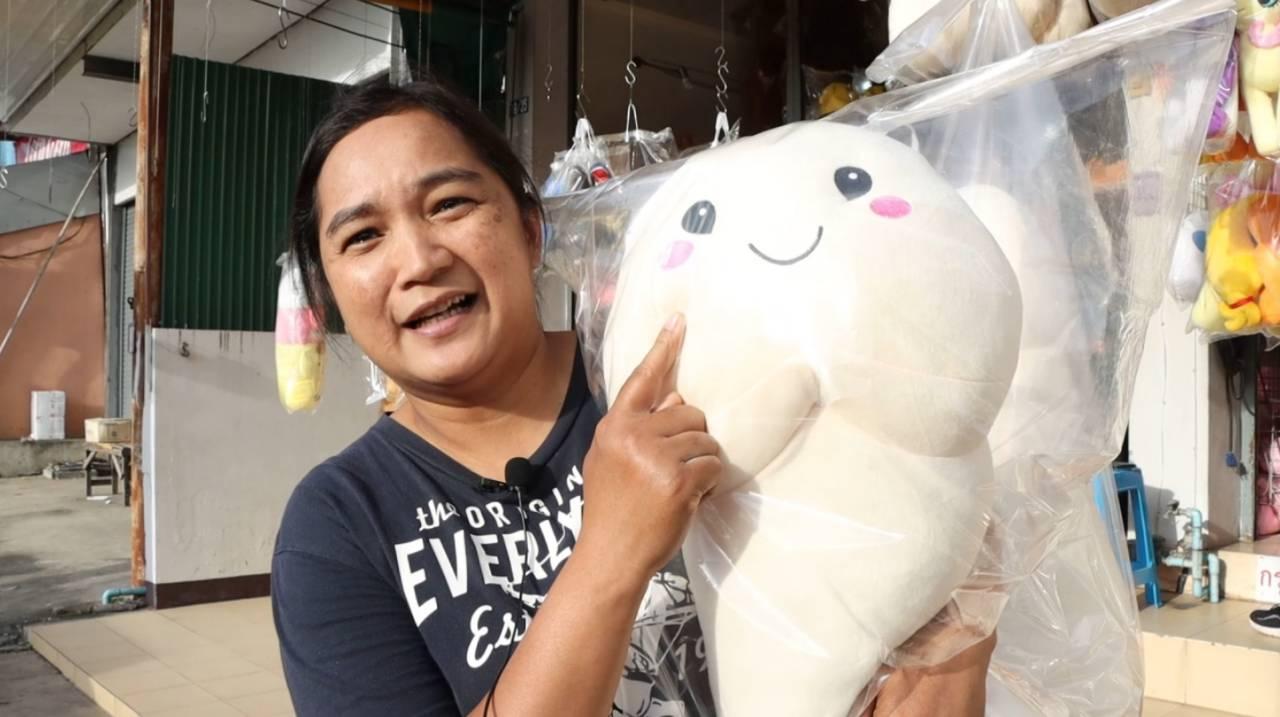 สอบถาม น.ส.เสาวภาคย์ แสงแก้ว อายุ 45 ปี เจ้าของร้าน ได้รับการเปิดเผยว่า ตนเปิดร้านจำหน่ายตุ๊กตามาประมาณ 14 ปี มีตุ๊กตาให้เลือกหลากหลายทั้งราคาปลีก-ส่ง โดยสินค้าในร้านจะเป็นสินค้าเกรดดี มีลิขสิทธิ์การอนุญาตจำหน่ายถูกต้อง ช่วงต้นปีที่ผ่านมาประสบกับพิษโควิด-19 ระบาด ทำให้การค้าขายขาดสภาพคล่อง ขายตุ๊กตาแทบไม่ได้ จนช่วง 1 สัปดาห์ที่ผ่านมา ทางบริษัทนำสินค้าตัวใหม่มาเสนอขาย เป็นหมอนข้างหน้าตาหน้ารัก ขนาด 80 เซนติเมตร