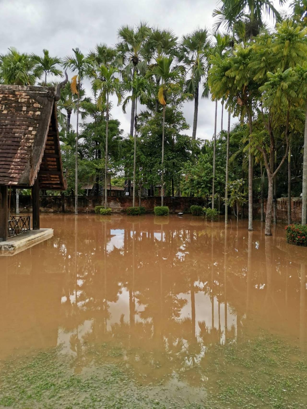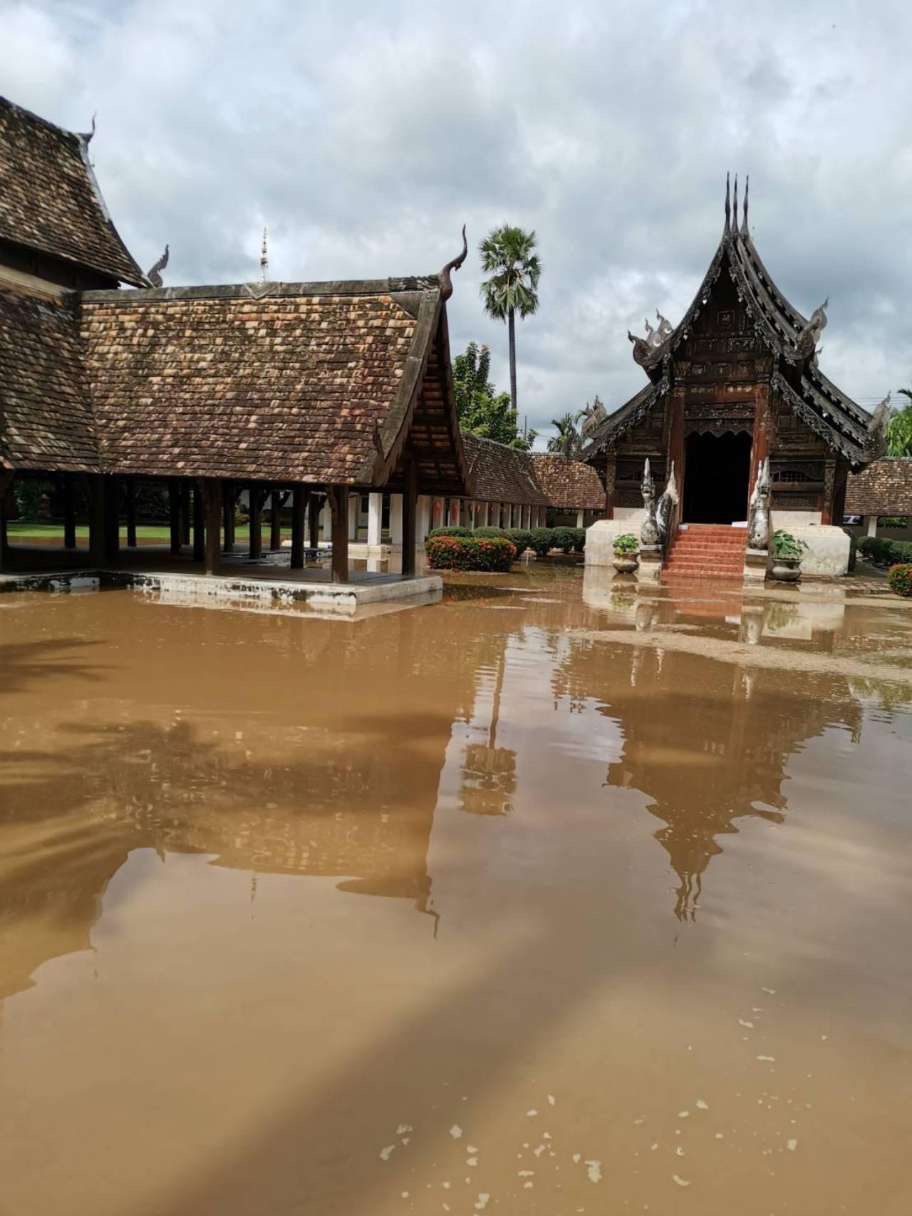 ฝนถล่มเชียงใหม่ 2 ชั่วโมง น้ำไหลท่วมวัดต้นเกว๋นอายุกว่า 168 ปี ชาวบ้านหวั่นกระทบโบราณสถาน ทั้งศาลาจัตุรมุข และวิหารไม้สักทองอายุกว่า 168 ปี เจ้าอาวาสเผยครั้งนี้ตกหนักมากสุดในรอบ 20 ปี