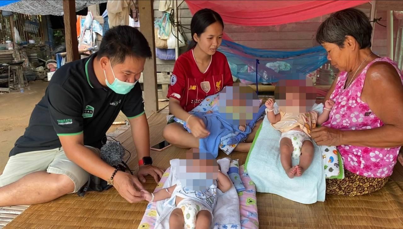 มารดาของเด็กแฝด 3 กล่าวอีกว่า ล่าสุดสามีก็ตัดสินใจไปหางานทำที่ จ.ชลบุรี เพื่อนำเงินมาเลี้ยงดูและใช้จ่ายในครอบครัว ได้เพียงแค่ 15 วัน ส่วนตาและยายก็ไม่สามารถทำงานได้ ทำให้ตนเองต้องเลี้ยงลูกไปด้วยร้องไห้ไปด้วยบางครั้งก็คิดยากจะยกลูกชายไปให้คนอื่นเลี้ยงบ้าง ก็คงดีกว่าอดตาย เพราะไม่มีเงินซื้อนมให้ลูกกิน แต่มองหน้าลูกแล้วก็สงสาร คงต้องเลี้ยงดูกันไปตามมีตามเกิด