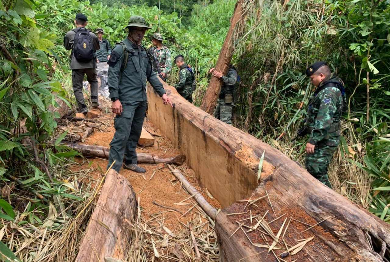 จากการตรวจสอบบริเวณป่าสงวนใกล้แนวชายแดนไทย-เมียนมา พบต้นไม้สักทองขนาดใหญ่อายุนับ 100 ปีถูกตัดโค่นลง และถูกตัดทอนเป็นท่อน จำนวน 4 ท่อน ท่อนแรกขนาดยาว 205 ซม. โต 152 ซม. ท่อนที่ 2 ยาว 200 ซม. โต 150 ซม. ท่อนที่ 3 ยาว 208 ซม. โต 147 ซม. และท่อนที่ 4 ยาว 200 ซม. โต 145 ซม. นอกจากนี้บริเวณใกล้กันเจ้าหน้าที่ยังได้ทำการตรวจยึดไม้แปรรูปหน้ากว้างจำนวนอีก 2 แผ่น ได้แก่ ไม้ประดู่ ยาว 213 ซม. กว้าง 80 ซม. หนา 8 ซม. และไม้แดง ขนาดยาว 212 ซม. กว้าง 56 ซม. หนา 7 ซม.