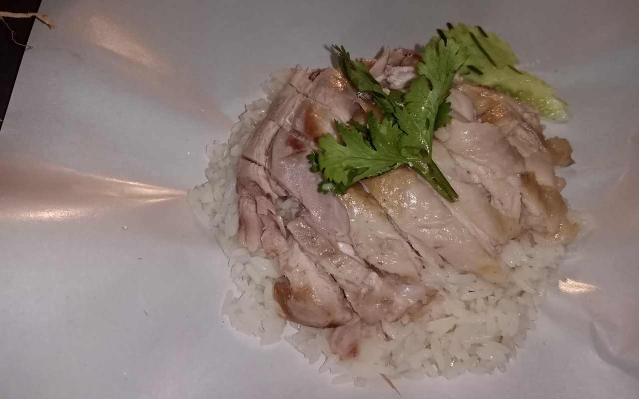"การสับใส่จานเริ่มจากเนื้อก่อน จากนั้นตามด้วยหนังด้านทับบน ใช้ผักคะน้าลวกกับน้ำต้มขาหมูสับใส่ข้างจาน และยังมีไข่ต้มผ่าซีกอีก 1 ฟอง ราดด้วยน้ำต้มขาหมู โรยหน้าด้วยผักชีเสิร์ฟลูกค้าหรือห่อกลับบ้าน ส่วนข้าวมันไก่ใช้ช่วงเนื้อสะโพกกับน่อง เนื่องจากเนื้อนุ่มแทรกมัน
