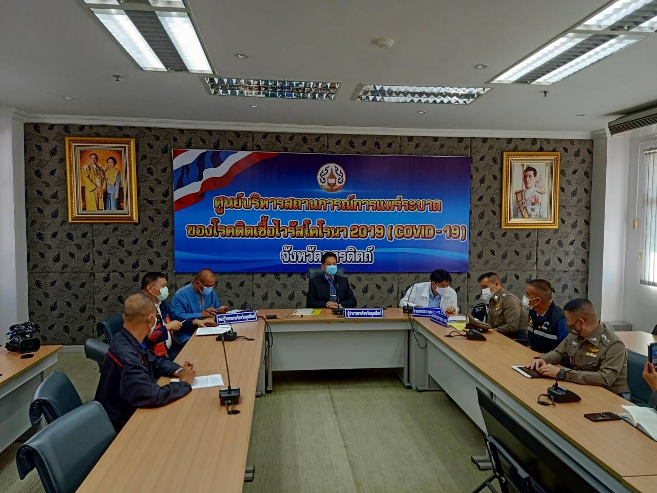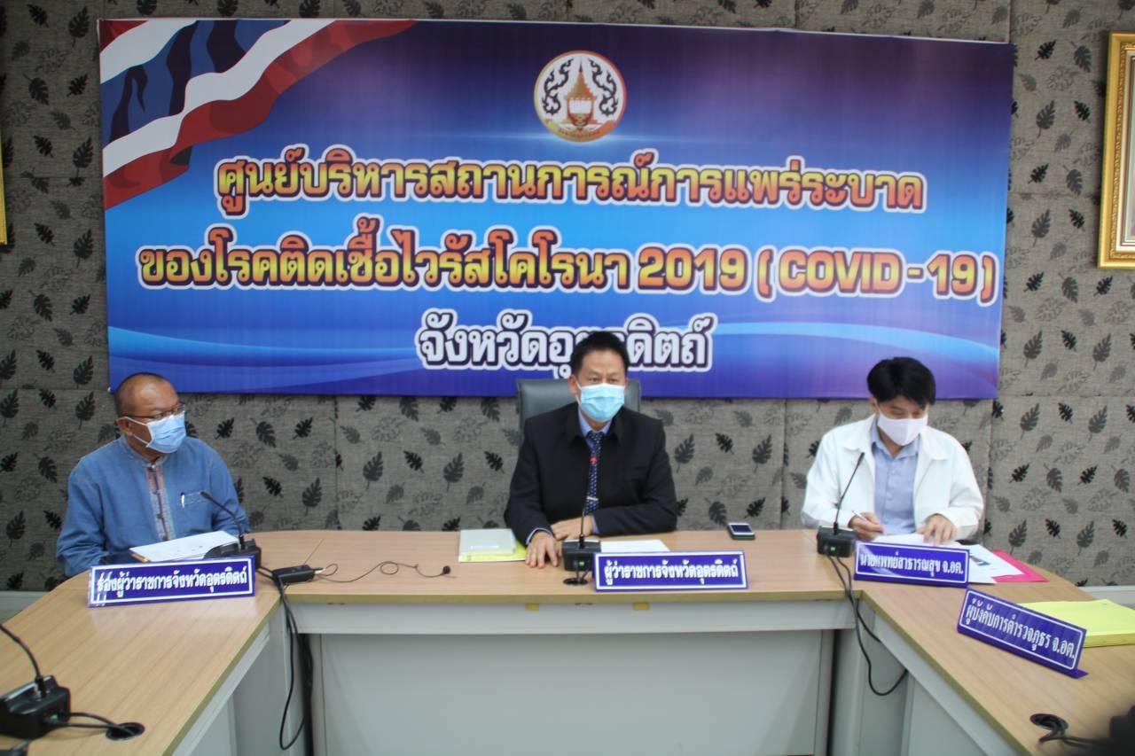 เมื่อเวลา 10.00 น. วันที่ 23 ธันวาคม 63 ที่ห้องประชุมสวางคบุรี ชั้น 5 ศาลากลางจังหวัดอุตรดิตถ์ ถูกใช้เป็นศูนย์บริหารสถานการณ์การแพร่ระบาดของโรคติดต่อไวรัสโคโรนา 2019 หรือ โควิด-19 นายผล ดำธรรม ผวจ.อุตรดิตถ์ แถลงร่วมกับ นพ.เกษม ตั้งเกษมสำราญ สาธารณสุขจังหวัด (สสจ.) อุตรดิตถ์ แถลงข่าว ถึงสถานการณ์การติดเชื้อโควิด 19 ในพื้นที่ จ.อุตรดิตถ์ พร้อมด้วย นายพิภัช ประจันเขตต์ รอง ผวจ.อุตรดิตถ์ และ พ.ต.อ.สมศักดิ์ อู่ตุ้ม รอง ผบก.ภ.จ.อุตรดิตถ์ พ.ต.อ.ดิษยเดช พัชรภูวดล ผกก.สืบสวนตำรวจภูธรจังหวัด (ภ.จว.) อุตรดิตถ์ พ.ต.อ.นนทวร สีอินทร์ ผกก.สภ.เมือง