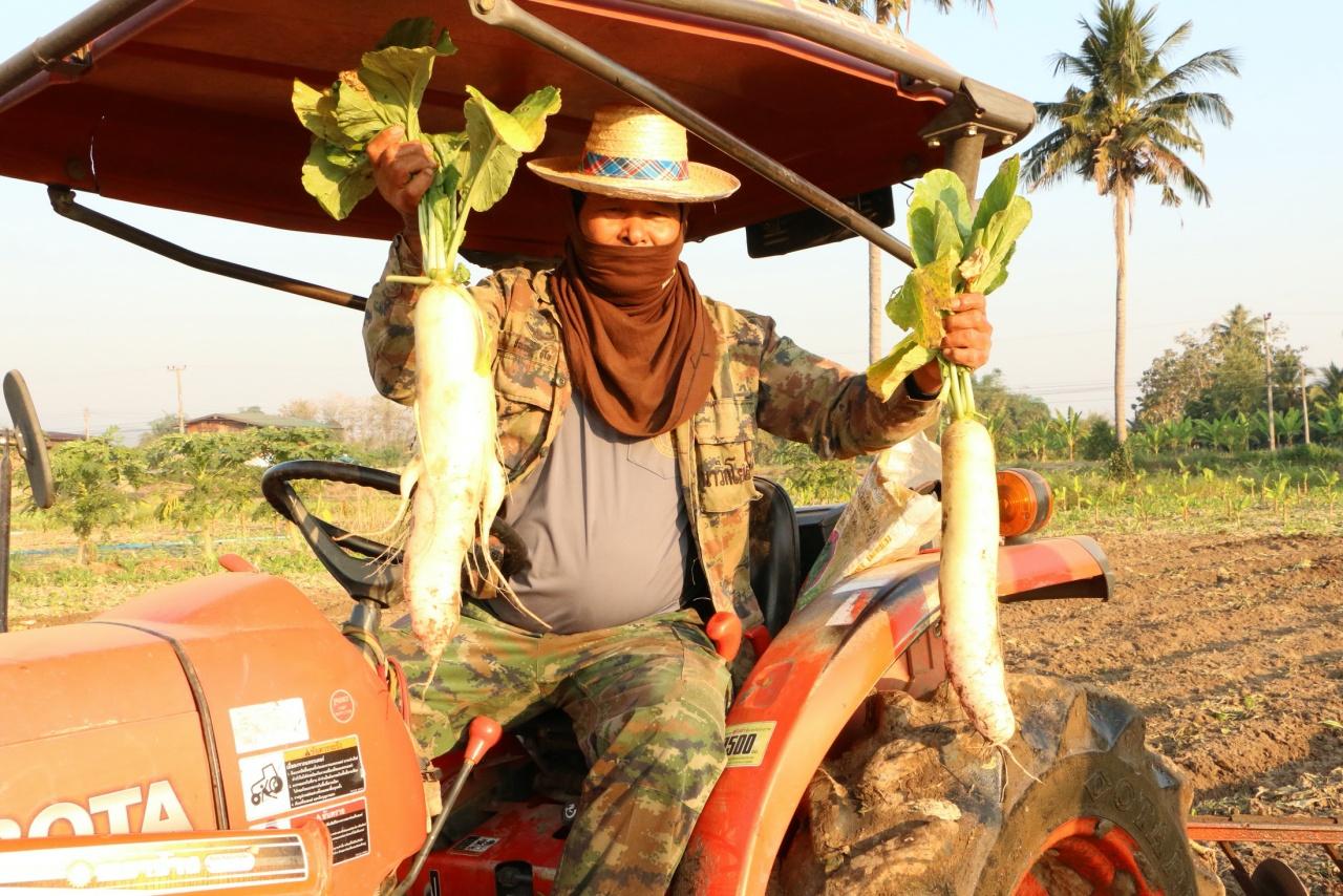 "หัวผักกาดเลยอายุการเก็บเกี่ยว เนื้อในจะฝ่อ ไม่สามารถนำไปดองได้ นำไปขายตลาดก็ไม่ได้เพราะแก่เกินไปแล้ว จึงต้องไถทิ้งแล้วปลูกมันสำปะหลังทดแทน ส่วนรายได้ ถ้าหากไม่มีอะไรมากระทบคาดว่าน่าจะได้มากกว่า 1 แสนบาท ซึ่งปีนี้มีโควตาให้เพียงรายละ 20 ตันเท่านั้น ส่วนที่เหลือทางเจ้าของโควตา ชดเชยให้ไร่ละ 1,200 บาท ซึ่งก็ยังดีที่ไม่ขาดทุน”