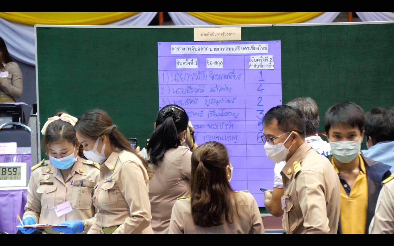 เมื่อวันที่ 8 ก.พ.64 บรรยากาศวันแรกของการรับสมัครเลือกตั้งสมาชิกสภาเทศบาล และนายกเทศมนตรีนครเชียงใหม่ ซึ่งจัดขึ้นที่โรงยิมเนเซียม 3 สนามกีฬาเทศบาลนครเชียงใหม่ เต็มไปด้วยความคึกคัก ผู้สมัครชิงตำแหน่งนายกเทศมนตรี จำนวน 6 คน พร้อมทีมผู้สมัครสมาชิกสภาเทศบาล เดินทางมาลงชื่อสมัครก่อน 08.30 น. กันทุกคน ทำให้คณะกรรมการการเลือกตั้งประจำเทศบาลนครเชียงใหม่ ได้ใช้วิธีการจับฉลากชื่อเพื่อเลือกลำดับจับหมายเลขผู้สมัคร