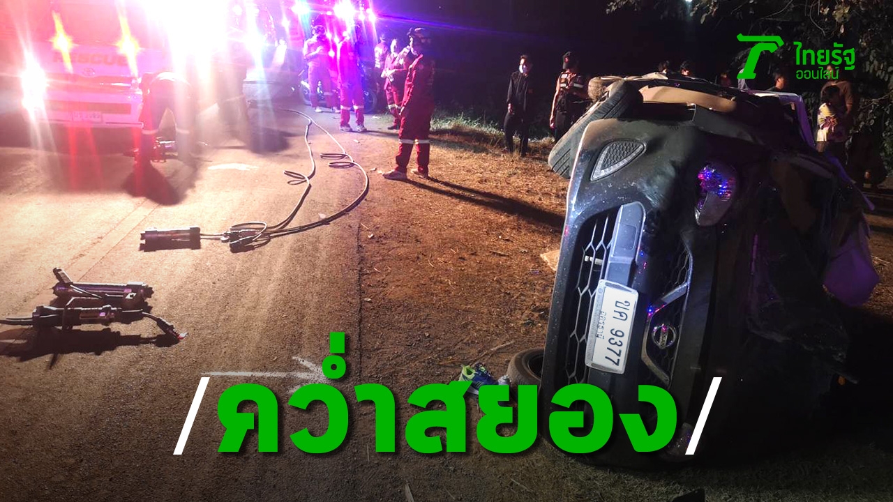 โจ๋ชาย-หญิง ซิ่งเก๋งออกจากร้านกินดื่ม เพื่อกลับบ้าน ระหว่างทางรถเสียหลักจนเกิดอุบัติเหตุพลิกคว่ำ ดับ 3 เจ็บ 3 ราย ตำรวจเร่งตัดถ่างให้ความช่วยเหลือ คาดคนขับหลับใน