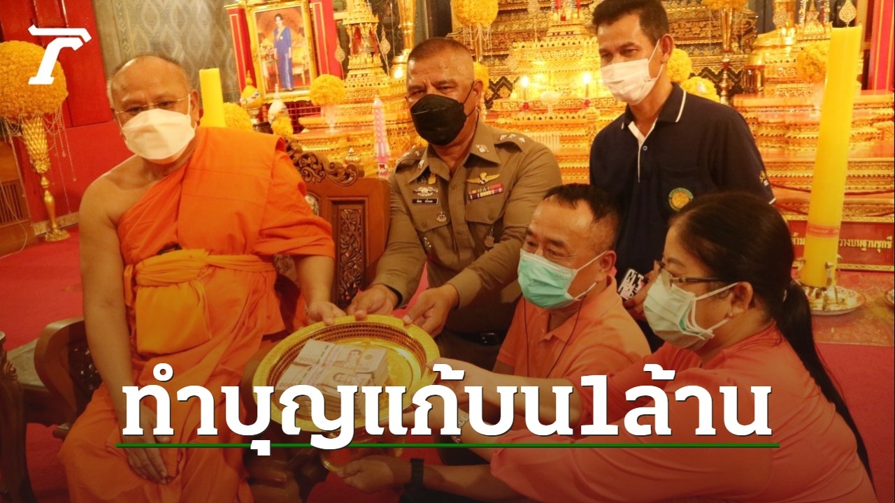 สำหรับการทำบุญครั้งนี้ ร.ต.อ.วินัย ได้ทำตามคำแก้บนที่บนไว้กับหลวงพ่อเพชร พระประธานในโบสถ์วัดท่าหลวง พระพุทธรูปเก่าแก่คู่บ้านคู่เมืองพิจิตร พระพุทธรูปปางมารวิชัย ศิลปะเชียงแสนที่มีอายุกว่า 800 ปี เป็นพระพุทธรูปที่พุทธศาสนิกชนชาวพิจิตรและจังหวัดใกล้เคียงเคารพนับถือในความศักดิ์สิทธิ์ โดย ร.ต.อ.วินัย ก่อนถูกรางวัลที่ 1 ได้บนไว้ว่าขอให้ถูกลอตเตอรี่รางวัลที่ 1 ตนและครอบครัวจะนำเงินไปทำบุญเพื่อสร้างหลังคาโบสถ์ที่ทางวัดท่าหลวงกำลังซ่อมแซมอยู่ 1 ล้านบาท โดยได้ซื้อเลขทะเบียนของรถตู้ยี่ห้อโตโยต้าสีเทา ของตนเอง ทะเบียน ฮย 5750 กทม.ที่ค้างส่งมาหลายงวด และเมื่อลอตเตอรี่ออกก็ถูกรางวัลที่ 1 5 ใบ จำนวน 30 ล้านบาท จึงได้แก้บนในวันนี้ตามที่ได้ลั่นวาจาไว้