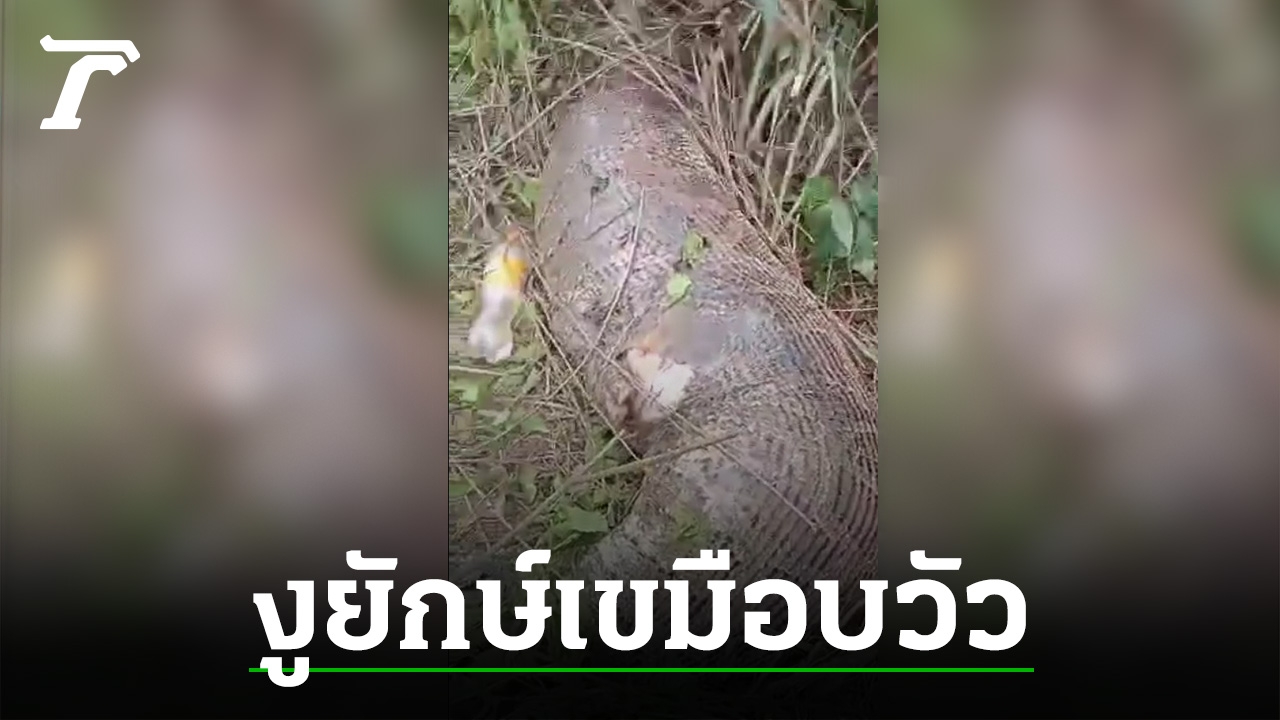 ชาวบ้านน้ำจวง อ.ชาติตระการ พิษณุโลก ถ่ายภาพงูเหลือมท้องแตกตายในเขตอนุรักษ์ภูเมี่ยงภูทอง หลังจากเขมือบวัวไปทั้งตัว เจ้าของตามหา ไปเจองูและวัวอยู่ในท้องงู ตายไปแล้วทั้งคู่ คาดซากวัวเน่าพองอืดทำให้งูเหลือมจอมตะกละท้องแตก