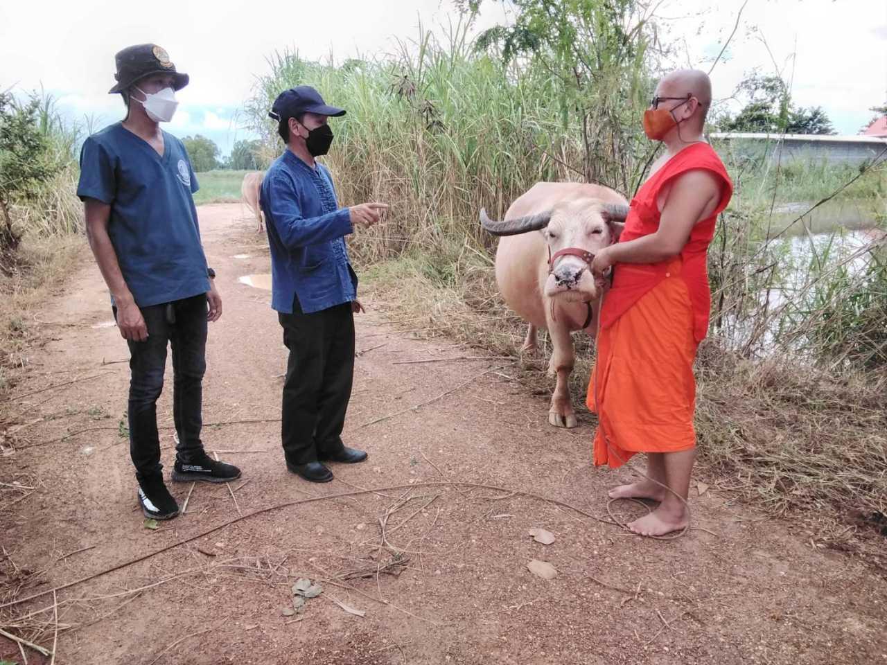เมื่อวันที่ 22 ก.ย.64 นายพศวัต อินทร์กลอย ปศุสัตว์ อ.เมือง จ.สุโขทัย นำเจ้าหน้าที่เดินทางไปกราบนมัสการ พระปลัดวัฒนา สิริสุวัณโณ เจ้าอาวาสวัดพลายชุมพล บ้านหางคลอง ม.5 ต.บ้านกล้วย อ.เมือง พร้อมตรวจสุขภาพให้กับฝูงควายเผือกจำนวน 6 ตัว ที่วัดเลี้ยงไว้และเจ้าอาวาสต้องรีบพาลุยน้ำท่วมสูงกว่า 1.5 เมตรออกมา เนื่องจากมวลน้ำไหลทะลักเข้าท่วมบริเวณหลังวัดอย่างรวดเร็ว ตั้งแต่กลางดึกของวันที่ 21 ก.ย.ที่ผ่านมา