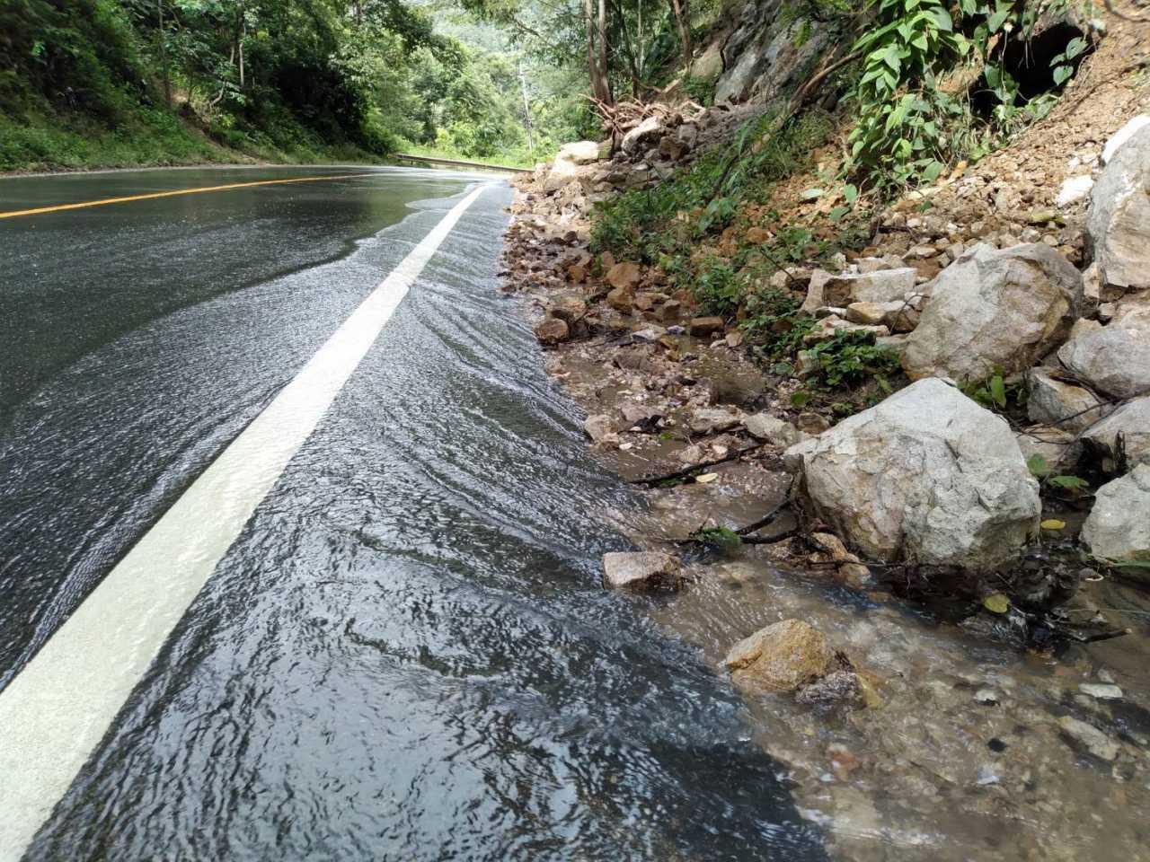 เตือนผู้ใช้รถระวังฝนตกหนักดินสไลด์ปิดถนนสายฮอด-แม่สะเรียง ก่อนถึงอุทยานฯออบหลวง และ สายฮอด-แม่แจ่ม หลังพบก้อนหิน น้ำป่าไหลหลากทับถนน กรมทางหลวงกำลังเร่งจัดการย้ายออกจากถนน