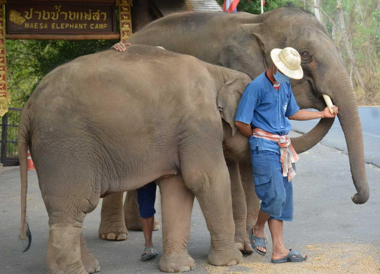 ปางช้างแม่สา อ.แม่ริม จ.เชียงใหม่ ที่มีช้างกว่า 70 เชือกเป็นปางช้างที่เคยได้ชื่อว่าใหญ่ที่สุดของประเทศไทยและเป็นแหล่งท่องเที่ยวอันดับต้นๆ ของประเทศ แต่ปรากฏว่าเมื่อสิ้นนายชูชาติ กัลมาพิจิตร ผู้ก่อตั้งปางช้างแม่สา ได้เสียชีวิตเมื่อปลายปี 2562 ได้เกิดปัญหาในการแบ่งมรดกพินัยกรรมไม่ลงตัวมีการฟ้องร้องระหว่างเครือญาติ โดยปางช้าง ทางนางอัญชลี กัลมาพิจิตร บุตรสาวคนโต ที่มีหุ้นในการบริหารปางช้างและมีความรู้เกี่ยวกับการเลี้ยงช้างเป็นอย่างดี ได้บริหาร แต่เกิดปัญหาการแพร่ระบาดของไวรัสโควิด-19 ทำให้การท่องเที่ยวเป็นศูนย์ ทางปางช้างได้เปลี่ยนระบบการบริหารปางช้างจากการเก็บค่าผ่านประตูและเลี้ยงช้างแบบมีการแสดงช้าง ต้องยกเลิก และหันมาเลี้ยงแบบอนุรักษ์ปลดโซ่ ปลดตะขอ และเปิดให้เข้าชมช้างฟรี เพื่อจะได้มีอาหารช้างจากนักท่องเที่ยวที่ซื้อตะกร้าเลี้ยงช้างแทน