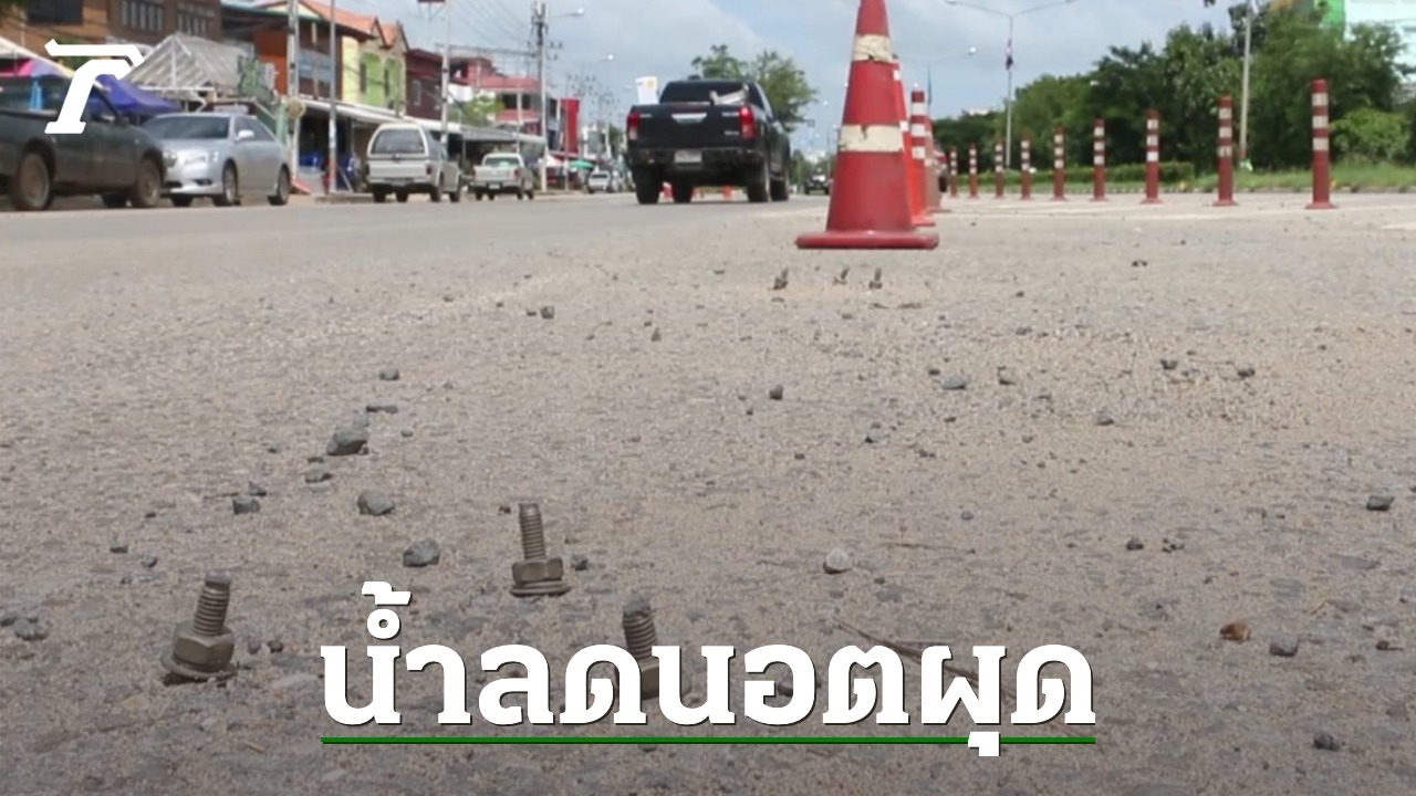 เตือนภัยหลังน้ำลด ที่เพชรบูรณ์ เสาพลาสติกสีส้ม ที่ช่วยแสดงอาณาเขตให้ผู้ใช้รถใช้ถนนขับขี่ได้อย่างปลอดภัย กลายเป็นตัวอันตรายเมื่อถูกน้ำพัดพังเสียหาย เหลือแต่นอตพุกยาวราว 1 นิ้ว โผล่ขึ้นมาบนถนนกลางตลาด ระยะทางยาวกว่า 200 เมตร จนรถยนต์ยางแตกไปแล้วหลายคัน