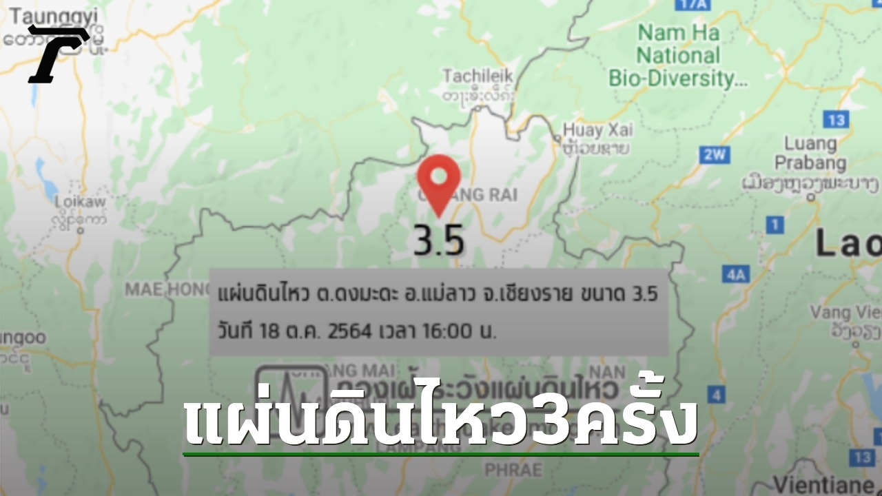 แผ่นดินไหว 3 ครั้ง ที่เชียงราย 3 อำเภอ รับรู้แรงสั่นไหว