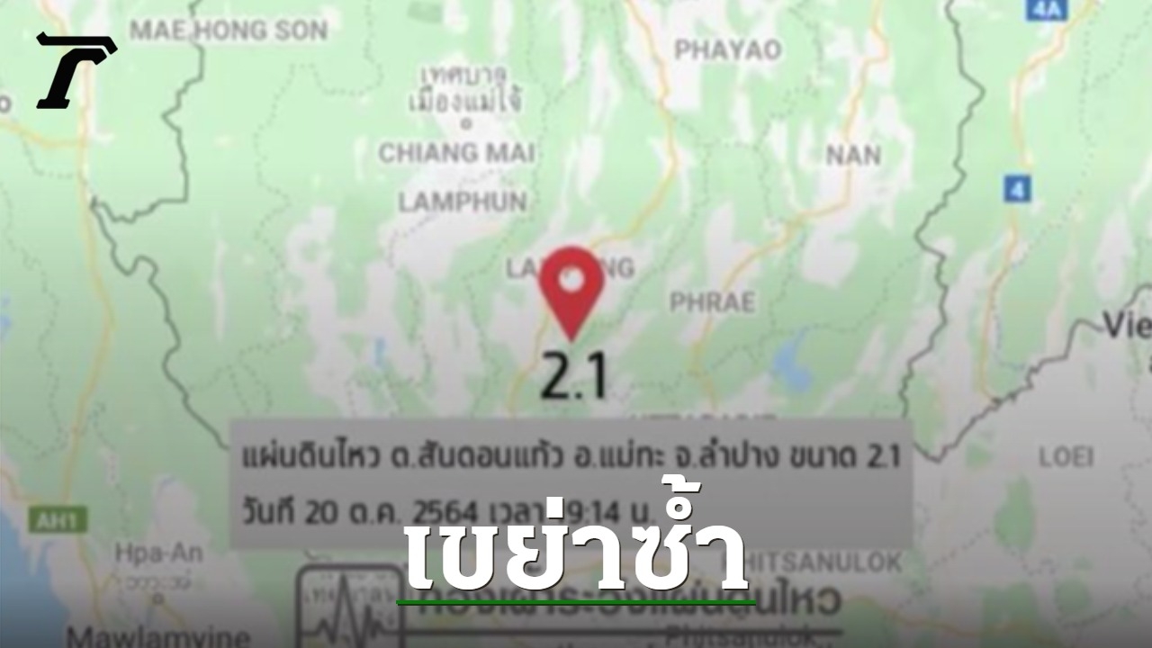 "ลำปาง" แผ่นดินไหวซ้ำ ขนาด 2.1 ริกเตอร์ ความลึก 4 กม. ศูนย์กลางอยู่ที่ ต.สันดอนแก้ว อ.แม่ทะ ชาวบ้านในพื้นที่รับรู้ถึงแรงสั่นสะเทือน เผย ต.ค.นี้ ไหวแล้ว 2 ครั้ง ห่างกันแค่ 2 วัน