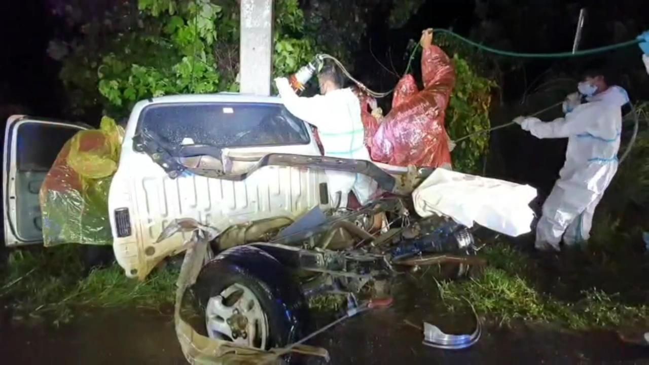 อาสากู้ภัยต้องนำเครื่องมือตัดถ่างในการนำร่างผู้เสียชีวิตออกจากตัวรถ ซึ่งต้องใช้เวลาราว 1 ชั่วโมง จึงจะสามารถนำร่างผู้เสียชีวิตออกจากซากรถได้ ซึ่งอุบัติเหตุครั้งนี้ ทำให้สภาพรถยนต์นั้นเสียหายทั้งคัน ขาดออกจากกันเป็น 2 ท่อน พร้อมด้วยเสาไฟฟ้าแรงสูงหัก 1 ต้น