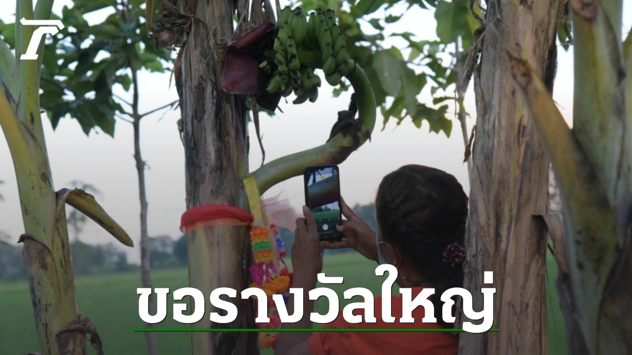 ชาวบ้านที่สุโขทัยตามไปดูต้นกล้วยน้ำว้าประหลาด ออกเครือกลางลำต้น และปลีชี้เข้าหาต้น เจ้าของไปเจอถ่ายรูปลงเฟซ คนเลยแห่มาขอหวย ลูบแป้งเจอเลข 3 ตัว