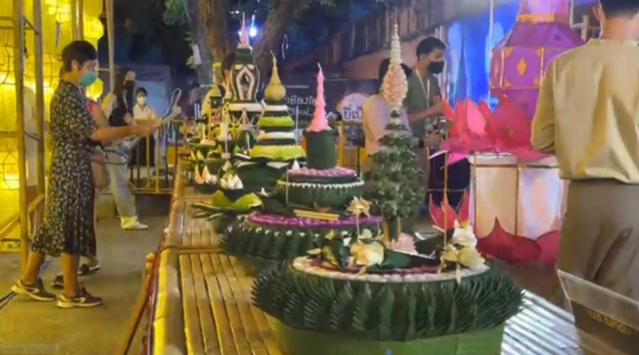 เมื่อวันที่ 18 พ.ย.2564 ผู้สื่อข่าวรายงานว่า บรรยากาศการจัดงานยี่เป็ง จ.เชียงใหม่ วันนี้ทางเทศบาลนครเชียงใหม่ได้มีการทำแพไม้ไผ่มาติดตั้งที่บริเวณท่าน้ำริมแม่น้ำปิงตลอดแนว หน้าสำนักงานเทศบาลนครเชียงใหม่ เพื่อให้ประชาชนและนักท่องเที่ยวได้ลอยกระทงในแม่น้ำปิง ในช่วงประเพณีเดือนยี่เป็งหรือลอยกระทงที่จะมีขึ้นในวันที่ 19-20 พ.ย.2564 พร้อมกันนี้ทางเจ้าหน้าที่เทศบาลยังได้เข้าไปทำความสะอาดฆ่าเชื้อเพื่อป้องกันการแพร่ระบาดของเชื้อไวรัสโควิด-19 นี้ ด้วย ขณะเดียวกันบริเวณริมปิงทางพ่อค้าแม่ค้าได้มาจับจองพื้นที่ขายของกันไว้แล้ว ซึ่งพ่อค้าแม่ค้าที่เข้ามาขายของจะต้องยื่นขออนุญาตจากทางเทศบาลนครเชียงใหม่เป็นที่เรียบร้อยแล้วเท่านั้น