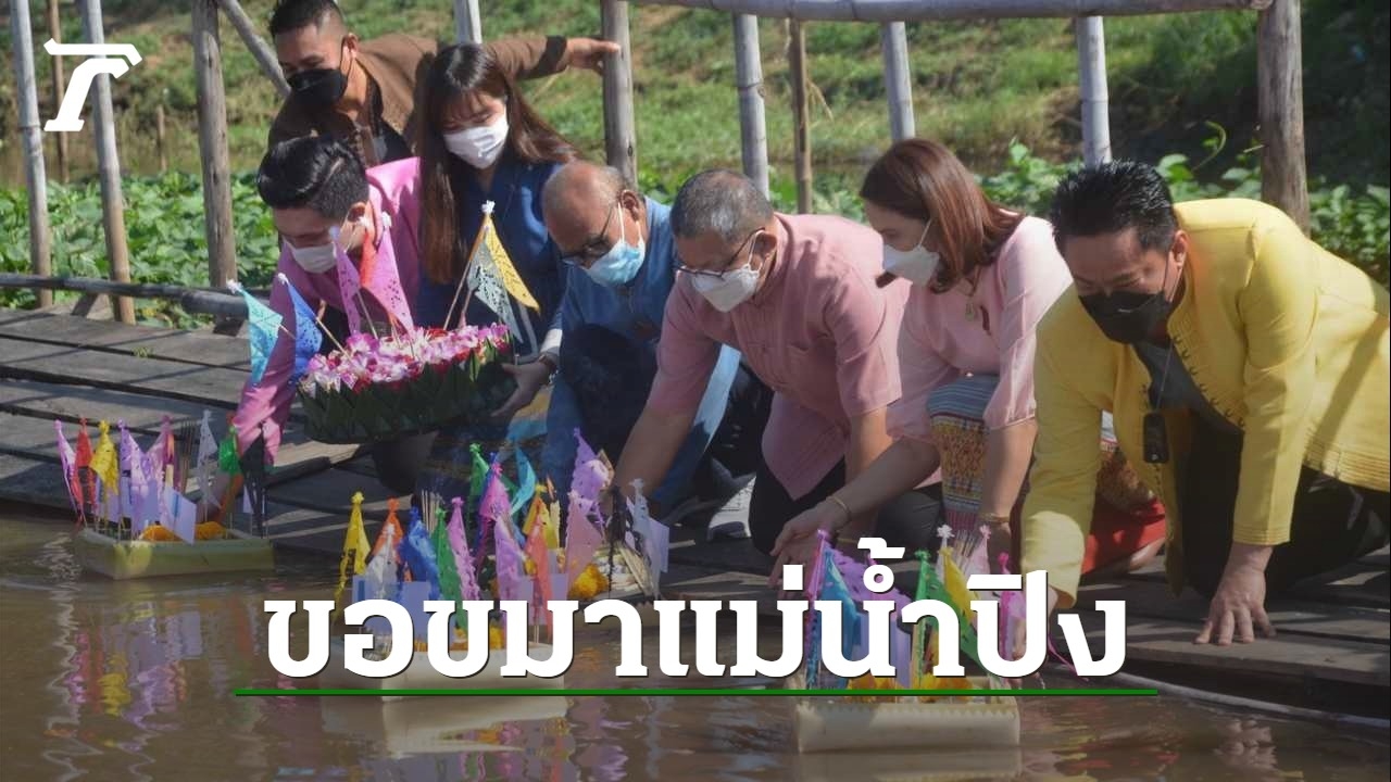 เทศบาลนครเชียงใหม่ร่วมกับชาวเชียงใหม่ ทำพิธีขอขมาแม่น้ำ ก่อนที่จะมีการลอยสะตวงปล่อยเคราะห์ใส่กระทงลงน้ำ ในงานประเพณีเดือนยี่เป็งเชียงใหม่ ประจำปี 2564