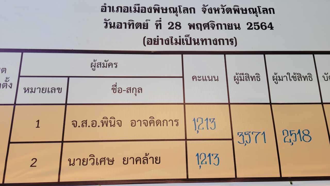 เมื่อเวลา 08.30 น. วันที่ 29 พ.ย. ผู้สื่อข่าวรายงานว่า ที่องค์การบริหารส่วนตำบลวังน้ำคู้ อ.เมือง จ.พิษณุโลก ผลการเลือกตั้งกฎว่าผู้สมัครนายก อบต.วังน้ำคู้ ได้คะแนนเสียงเท่ากันคือ 1,213 คะแนน