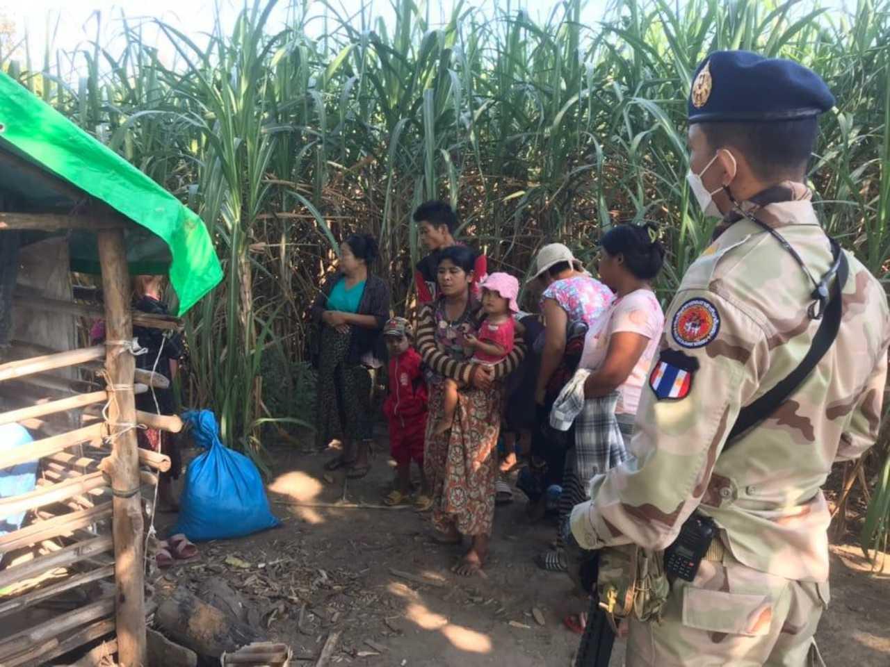 รายงานข่าวแจ้งว่า ตลอดทั้งคืนที่ผ่านมา ยาวมาถึงรุ่งเช้าวันนี้ผู้อพยพทั้งหมดนี้ได้คนนอนพักอาศัยอยู่กลางสนามฟุตบอล โดยเจ้าหน้าที่ฝ่ายความมั่นอำเภอแม่สอดและภาคเอกชนได้นำสิ่งของจำเป็นทั้งเครื่องนุ่งห่มกันหนาว และกางเต็นท์ให้ผู้หนีภัยสงครามได้นอนพักอาศัยเป็นการช่วยเหลือทางด้านมนุษยธรรมเบื้องต้น นอกจากนี้เจ้าหน้าที่และชาวบ้านยังช่วยกันเปิดโรงประกอบอาหารชั่วคราวที่วัดย่านกลางหมู่บ้านใกล้กับจุดรองรับผู้หนีภัยสงคราม เพื่อประกอบอาหารเลี้ยงผู้หนีภัยสงคราม ซึ่งทุกอย่างเป็นไปด้วยความเข้มงวด โดยห้ามไม่ให้ผู้ไม่มีส่วนเกี่ยวข้องเข้าไปในพื้นที่รองรับผู้หนีภัยสงคราม ท่ามกลางมาตรการทางด้านสาธารณสุขในเรื่องการป้องกันโควิด-19 ที่อาจจะมากับผู้หนีภัยการสู้รบได้