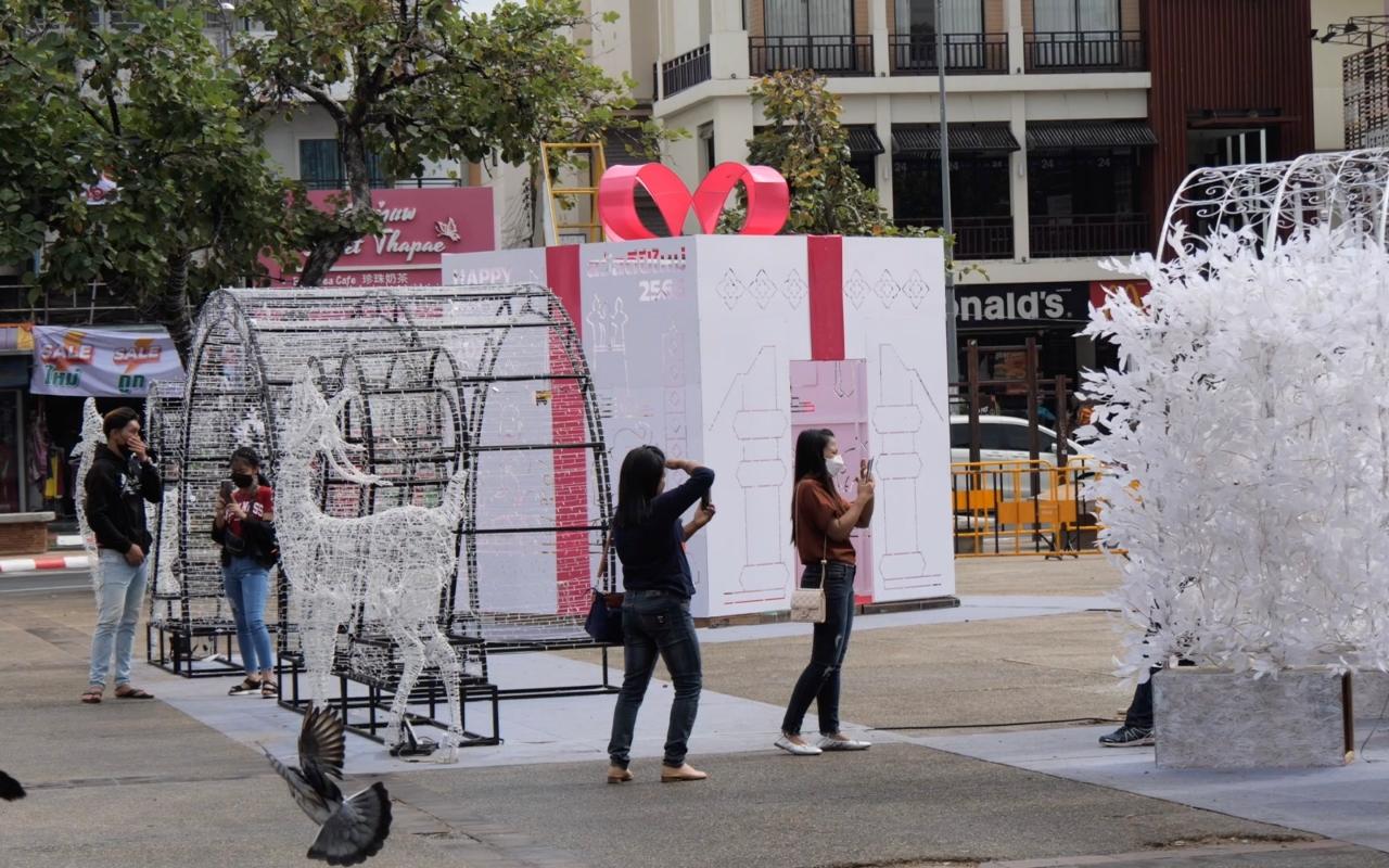 ส่วนที่ลานอเนกประสงค์ข่วงประตูท่าแพ มีนักท่องเที่ยวพากันไปถ่ายภาพกับกล่องของขวัญยักษ์ที่ถูกวางไว้บนลานให้นักท่องเที่ยวได้ถ่ายภาพ เป็นส่วนหนึ่งของกิจกรรมเคาต์ดาวน์ที่จัดขึ้นในส่วนของเทศบาลนครเชียงใหม่