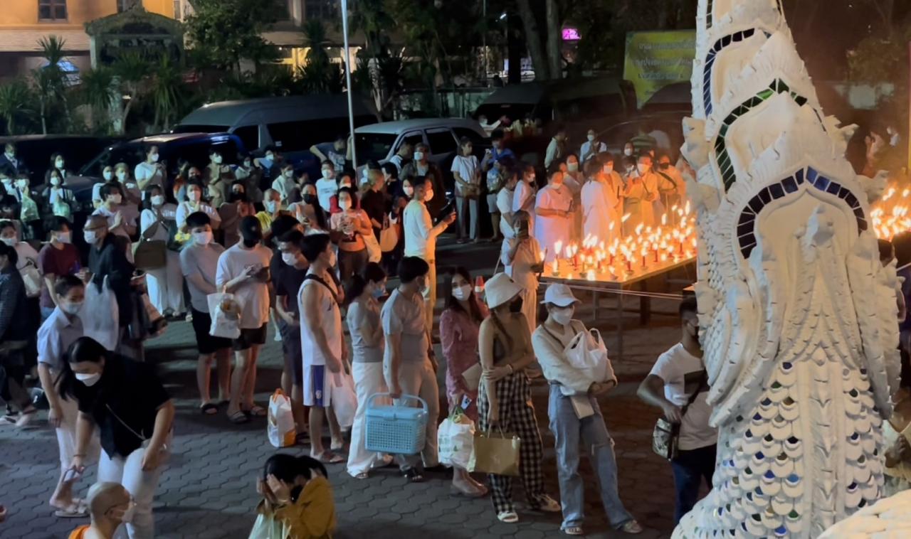 ศรัทธาหลั่งไหล พุทธศาสนิกชนชาวเชียงใหม่แห่ร่วมบุญตักบาตรเที่ยงคืน หรือวันเป็งปุ๊ด ที่วัดอุปคุต เนืองแน่น เพื่อเสริมความสิริมงคลแห่งชีวิต โดยปรับเปลี่ยนรูปแบบตามมาตรการป้องกันโควิด