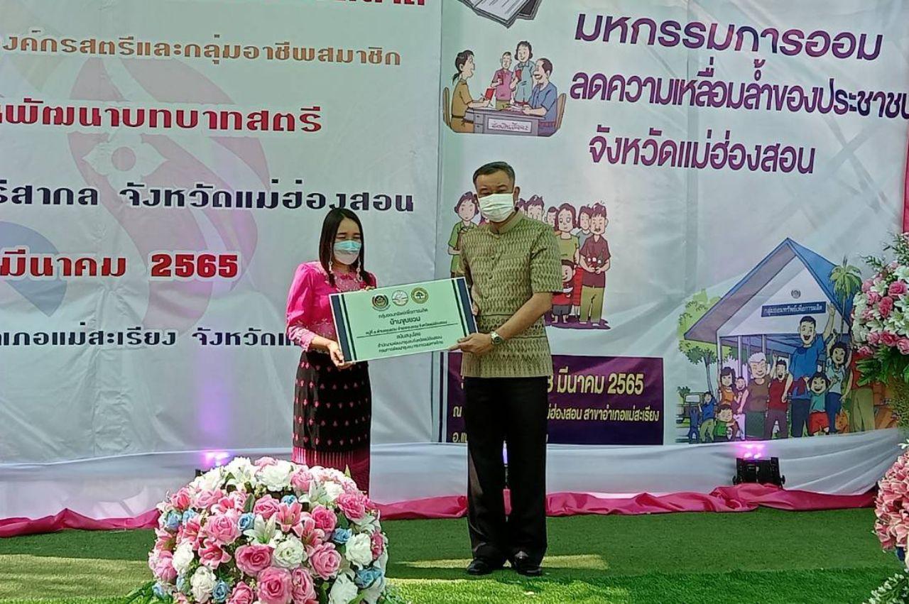 จังหวัดแม่ฮ่องสอน ส่งเสริมการออมภาคประชาชน ก่อตั้งกลุ่มออมทรัพย์เพื่อการผลิตในวันสตรีสากล ประจำปี 2565 และ มหกรรมการออม พร้อมมอบเกียรติบัตรให้กลุ่มออมทรัพย์เพื่อการพัฒนาดีเด่น