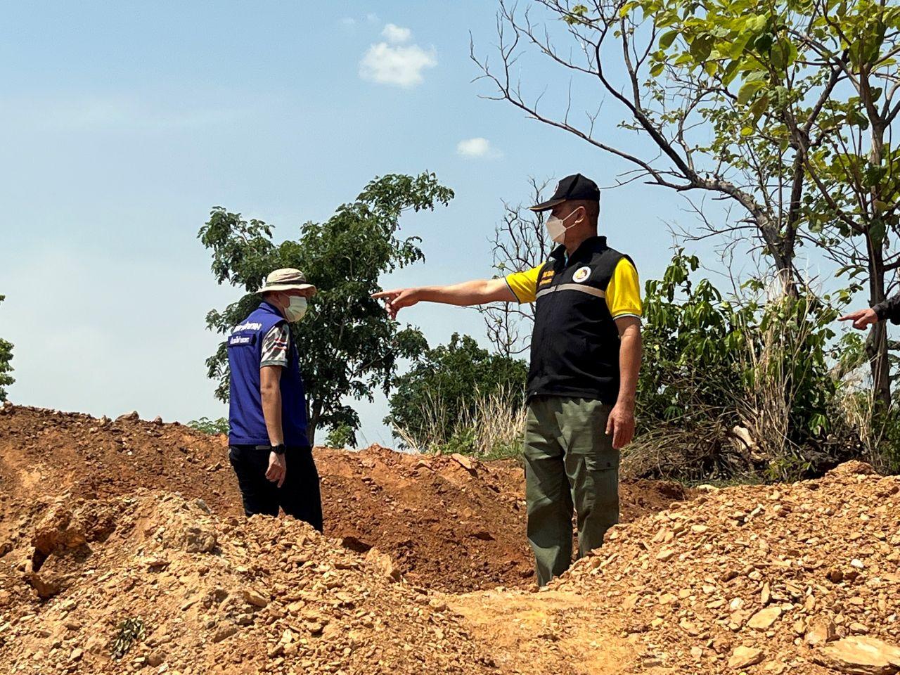 นายวัฒนา ผันน้อย เจ้าพนักงานป่าไม้ชำนาญการ หัวหน้าหน่วยป้องกันรักษาป่าที่ กพ.1 (น้ำดิบ) กล่าวว่า ตอนนี้เจ้าหน้าที่กำลังเร่งตรวจสอบพื้นที่ว่าเป็น ส.ป.ก. หรือพื้นที่ป่าสงวน เบื้องต้นคาดว่าน่าจะเป็นพื้นที่คาบเกี่ยวกัน โดยบางส่วนเข้าไปในป่าสงวนแห่งชาติ ป่าคลองวังเจ้าและป่าคลองสวนหมาก พื้นที่ความเสียหาย 2 ไร่กว่าๆทั้งนี้จะได้ตรวจเช็กพิกัดอีกที ซึ่งจากร่องรอยผู้ลักลอบขุดน่าจะเข้ามาขุดดินในบริเวณนี้อยู่หลายวันแล้ว แต่เมื่อเราตรวจสอบก็ไม่พบเครื่องจักรแล้ว จะมาพบก็แค่ร่องรอยในการขุดอย่างที่เห็น