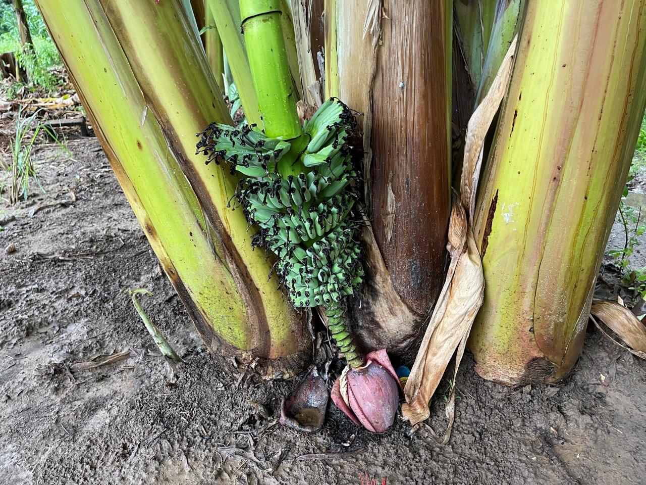 เมื่อเวลา 17.00 น. วันที่ 28 มิ.ย. 65 ผู้สื่อข่าวเดินทางไปที่บ้านเลขที่ 7/1 ม.3 ต.วังแขม อ.คลองขลุง จ.กำแพงเพชร ภายในบ้านหลังดังกล่าวได้ปลูกกล้วยน้ำว้าไว้หลายต้น ซึ่งหนึ่งในนั้นมีต้นกล้วยน้ำว้าที่มีลักษณะแปลกกว่าเพื่อน มีเครือออกมากลางลำต้น และหัวปลีทิ่มลงไปบนพื้นดิน พบกับนางจันทิมา ค่ำยัง หรือ ป้าหนูอายุ 62 ปี เจ้าของต้นกล้วยน้ำว้า กล่าวว่า กล้วยต้นนี้ได้ปลูกไว้นานกว่า 1 ปีแล้ว ซึ่งเมื่อ 3 เดือนก่อน เกิดลมพายุพัดทำให้ต้นกล้วยน้ำว้าหัก ต้องตัดลำต้นบางช่วงออก แต่จุดที่ตัดกลับมีเครือกล้วยโผล่ขึ้นมา 1 เครือกลางลำต้น และออกลูกดกถึง 16 หวี