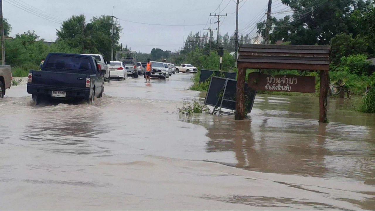 และน้ำยังได้ไหลเอ่อท่วมถนนสายพะเยา-ป่าแดด ต.ห้วยแก้ว อ.ภูกามยาว จ.พะเยา บริเวณตั้งแต่หน้าที่ว่าการอำเภอภูกามยาว ไปถึงบริเวณปากทางเข้าบ้านม่วงคำ ระยะทาง 1 กม.น้ำได้ไหลล้นเอ่อท่วมถนนสูง 50-1.50 เมตร ทำให้รถที่สัญจรผ่านไปมาต้องใช้ความระมัดระวังทางเจ้าหน้าที่ ตำรวจเจ้าหน้าที่เทศบาลตำบลและผู้ใหญ่บ้านกำนันต้องช่วยกัน นำอุปกรณ์มากั้นทางเป็นแนวเพื่อเดินรถและเพื่อป้องกันอันตราย