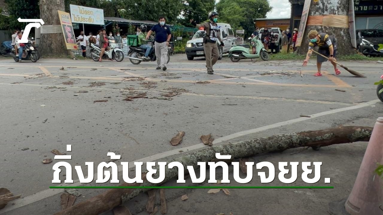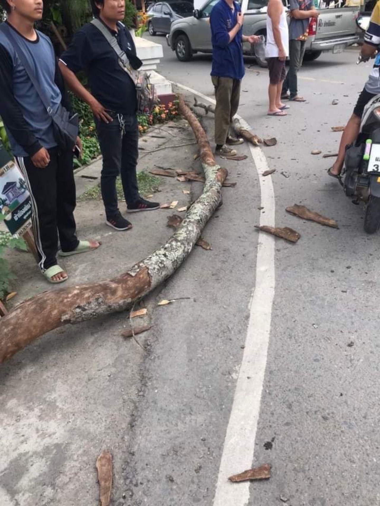 กิ่งไม้ยางยักษ์บนถนนเชียงใหม่-ลำพูน อ.สารภี หักล้มทับ 3 แม่ลูก ขณะขี่ จยย.เข้าตัวเมืองเชียงใหม่ ผู้เป็นยายสลบคาที่ ขณะที่ลูกสาวและหลานชายสามขวบไม่ได้รับอันตรายแต่ยังอยู่ในอาการตกใจ