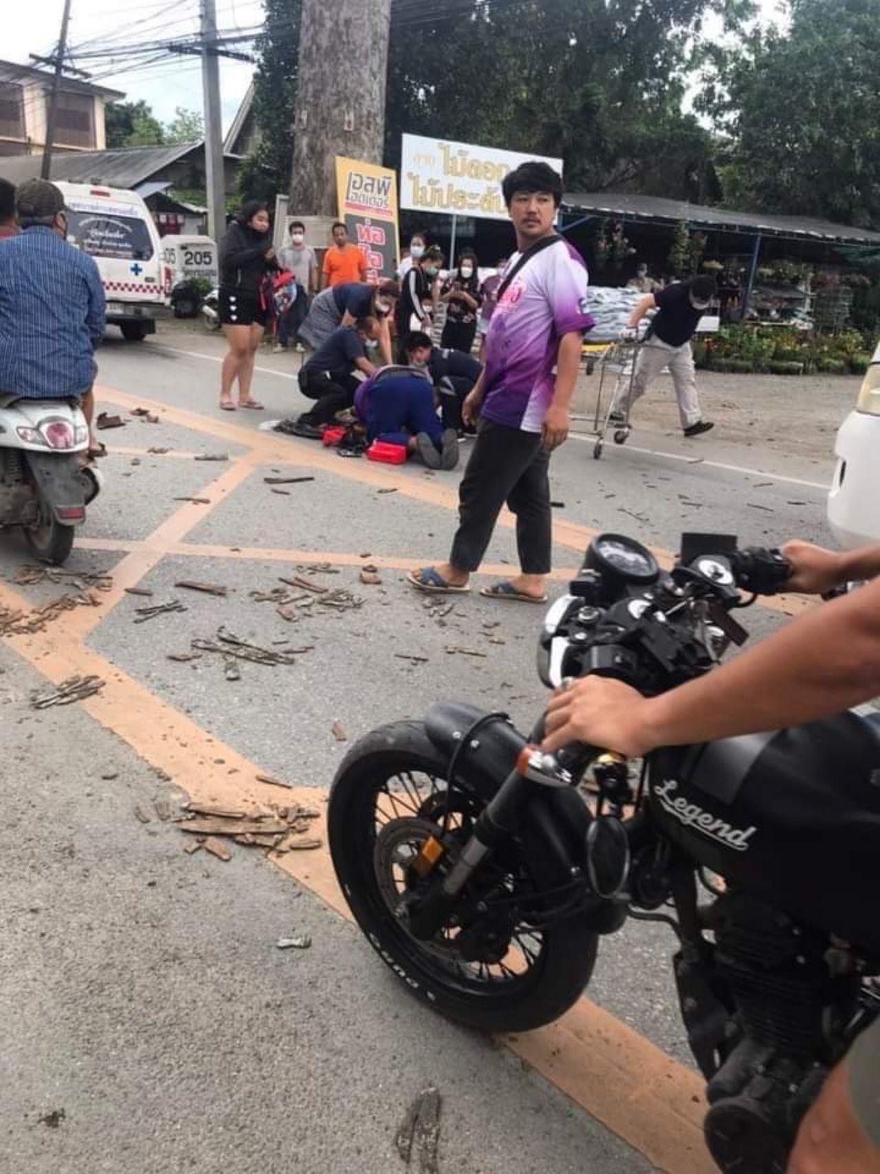 จากการสอบถามแม่ของเด็กชาย ที่ประสบอุบัติเหตุดังกล่าวได้บอกว่า ตนกับได้นำลูกของตนพร้อมกับแม่ของตนซึ่งเป็นยายของลูก พากันขี่รถจักรยานยนต์สีเขียวอ่อน เพื่อจะเข้าไปในตัวเมืองเชียงใหม่ ขณะขี่จักรยานยนต์มาตามทาง จู่ๆ กิ่งไม้ต้นยางก็หักโค่นลงมา โดยตนไม่รู้ตัวเลย และกิ่งไม้ก็ฟาดไปโดนแม่ของตนที่นั่งซ้อนท้ายด้านหลังตกรถและรถของตนก็เสียหลัก ตนได้พยายามทรงตัวและพยายามบังตัวลูกไม่ให้โดนกิ่งยาง พลเมืองดีที่เห็นเหตุการณ์ต่างเข้าช่วยเหลือ