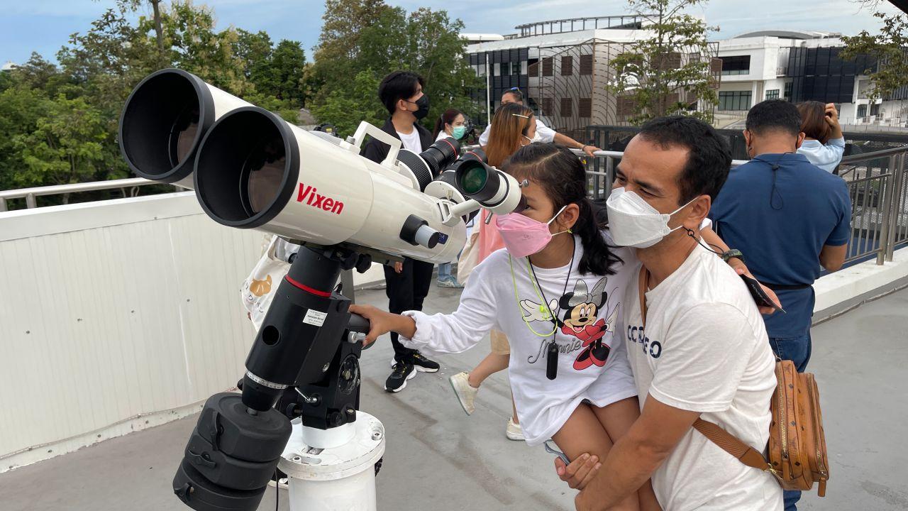 อย่างไรก็ตามดูเหมือนว่าในช่วงค่ำวันนี้ สภาพอากาศจะไม่เป็นใจโดยมีเมฆปกคลุมเต็มท้องฟ้าตั้งแต่ช่วงบ่ายจนถึงค่ำ ทำให้ในเวลาพระอาทิตย์ลับขอบฟ้า 18.37 น. ยังมองไม่เห็นดวงจันทร์แต่อย่างใด แต่หลายคนก็ไม่เสียใจเพราะว่าอย่างน้อยก็ได้พาเด็กๆ มาร่วมกิจกรรม และได้เห็นและสัมผัสกับกล้องโทรทรรศน์ดูดาวสร้างความตื่นตาตื่นใจให้กับเด็กๆ ไม่น้อย