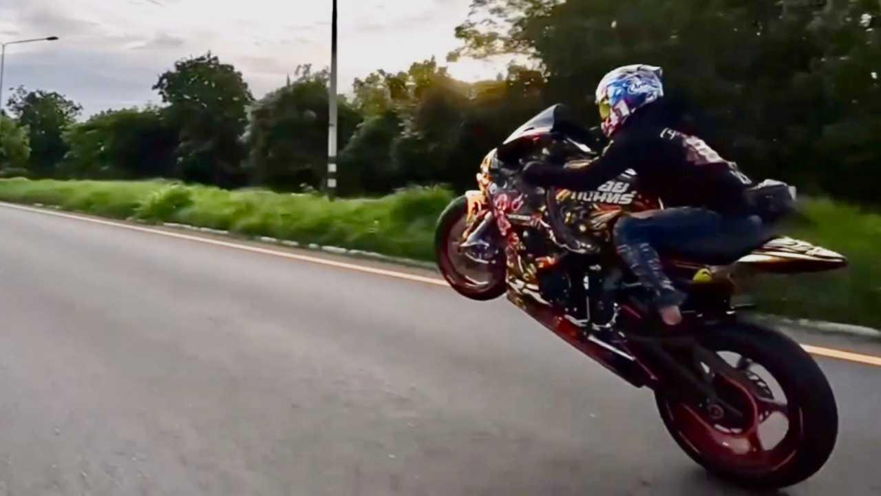 โดยในคลิปจะเห็นว่ามีรถจักรยานยนต์บิ๊กไบค์อยู่คันหนึ่ง ที่ขี่อยู่ด้านขวามือเลนในสุด ความเร็วจากที่เห็นในคลิปอยู่ที่ 150-170 กิโลเมตรต่อชั่วโมง โดยผู้ขับขี่คันดังกล่าวยกล้อหน้าโชว์ โดยมีเพื่อนที่ขี่รถจักรยานยนต์อีกคันเป็นคนถ่ายวิดีโอให้ อย่างไม่กลัวว่าจะเกิดอุบัติเหตุบนท้องถนน