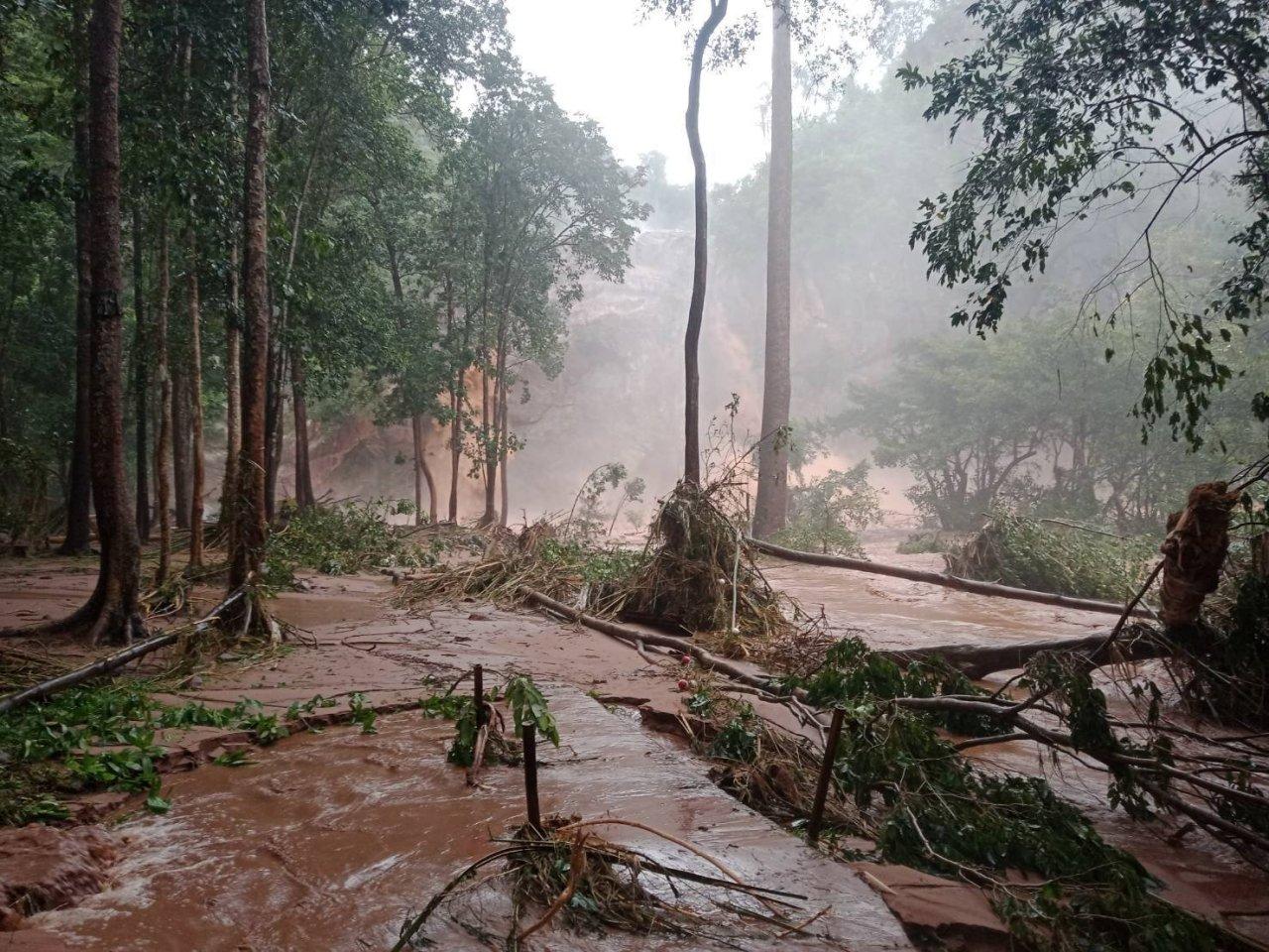 ขณะที่ น้ำตกชาติตระการ ภายในอุทยานแห่งชาติน้ำตกชาติตระการ อ.ชาติตระการ ถูกป่าทะลักตั้งแต่เมื่อคืนที่ผ่านมา จนช่วงบริเวณล่างน้ำตกได้รับความเสียหาย จนทางอุทยานแห่งชาติน้ำตกชาติตระการ ประกาศปิดเป็นการชั่วคราว ตั้งแต่วันที่ 21 สิงหาคม 2565 เวลา 09.30 น. เป็นต้นไป จนกว่าสถานการณ์จะเข้าสู่สภาวะปกติ เนื่องจากได้ ได้รับผลกระทบจากเหตุการณ์ดังกล่าว โดยมีฝนตกหนัก ลมแรง ตกไม้ล้ม และน้ำป่าไหลหลาก ดังนั้นอุทยานแห่งชาติน้ำตกชาติตระการ จึงประกาศปิดการท่องเที่ยวบริเวณน้ำตกชาติตระการเป็นการชั่วคราว ส่วนที่น้ำป่าหลากท่วมพื้นที่บ้านนาฟองแดง หมู่ที่ 7 ต.นครชุม อ.นครไทย ระดับน้ำยังเพิ่มขึ้นเล็กน้อย สำหรับบ้านนาคล้าย หมู่ที่ 1 บ้านนาจาน หมู่ที่ 5 ต.นาบัว อ.นครไทย ปริมาณน้ำหลากท่วมพื้นที่เป็นบริเวณกว้าง ทางเจ้าหน้าที่กู้ภัยมงคล มูลนิธิมิตรภาพมงคลธรรมร่วมกับเจ้าหน้าที่ อบต.นาบัว เจ้าหน้าที่ ปภ.นครไทย และผู้นำท้องถิ่นได้นำเรือท้องแบนเข้าไปช่วยเหลือขนทรัพย์สินมีค่าของชาวบ้านขึ้นบนที่สูง และขนย้ายหมูของชาวบ้านออกมาอยู่บนที่สูงแล้ว