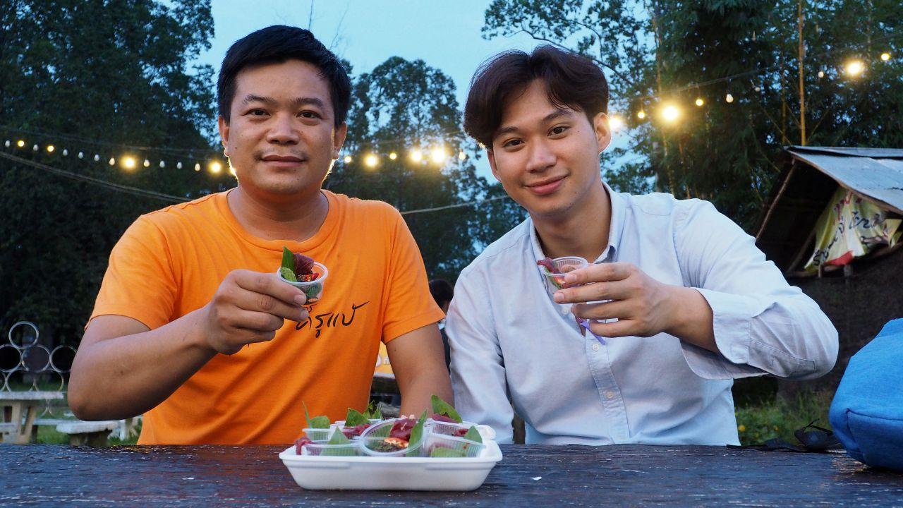 ด้าน นายนิรันชัย เชียงแรง และ นายกันตพล แสงศรีจันทร์ ชาวบ้านม่วงชุม ต.ป่าสัก อ.ภูซาง จ.พะเยา บอกว่า ตนเองทราบว่ามีร้านขาย จุ๊เนื้อยกซด ชอตละ 5 บาท จึงขับรถข้ามอำเภอระยะทางกว่า 30 กิโลเมตร มาทดลองชิมและต้องมานั่งรอคิวอีก กว่าจะได้ลิ้มชิมรส จุ๊เนื้อยกซด ราคาประหยัด เมื่อตนเองและเพื่อนได้ทดลองชิมถึงกับต้องร้องว้าวกับรสชาติของเนื้อวัว ที่มีรสหวานกลมกล่อม น้ำจิ้มสูตรขมเด็ดเผ็ดร้อนจัดจ้าน รู้สึกว่าไม่ผิดหวังที่ได้มาทาน อีกทั้งราคาสบายกระเป๋าอีกด้วย.