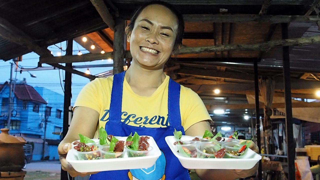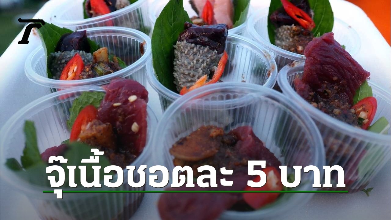 เย็นนี้แนะนำ "จุ๊เนื้อยกซด" เสิร์ฟขายชอตละ 5 บาท มากับน้ำจิ้มขมรสเด็ดเผ็ดจัดจ้านซิกเนเจอร์ของแม่ค้าเอง คนสายเนื้อ สุดคุ้ม ลูกค้าต้องตามมากินข้ามอำเภอถึงร้านที่ กาดไนท์พลาซ่าเชียงคำ จ.แพร่