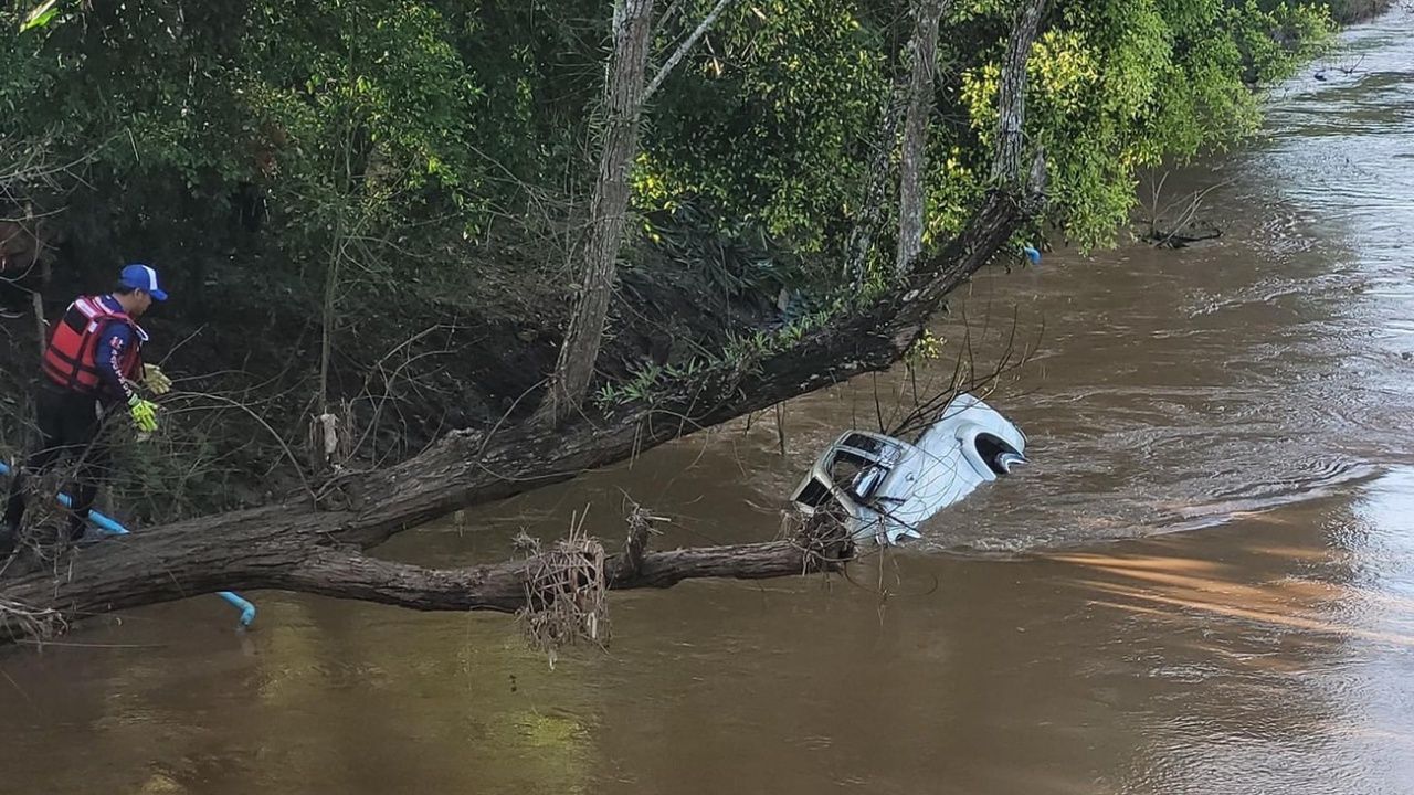 อุบัติเหตุรถกระบะแหกโค้งพุ่งลงลำน้ำลาว อ.แม่สรวย จ.เชียงราย 3 คน ว่ายขึ้นฝั่งได้ แต่มีหญิงสาวจมหายไป 1 คน ล่าสุดกู้ภัยร่วมกันกู้รถขึ้นมาได้แล้ว ส่วนคนที่หายยังหาไม่เจอ