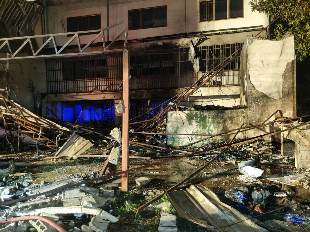 จากการตรวจสอบเบื้องต้นพบว่าอาคารทั้ง 3 คูหาเป็นโกดังเก็บยาฆ่าหญ้าของร้าน หลังปิดร้านไปในช่วงเย็นไม่มีใครอยู่ ก่อนเกิดเหตุเกิดเสียงระเบิดดังสนั่นไปทั่วบริเวณถึงสองครั้ง ก่อนเกิดเพลิงลุกไหม้ เบื้องต้น คาดไฟฟ้าลัดวงจร ทำให้เกิดประกายไฟลามไปติดกับยาฆ่าหญ้าที่มีส่วนผสมของวัตถุไวไฟบางอย่างจนเกิดระเบิด โดยในตอนเช้า เจ้าหน้าที่พิสูจน์หลักฐานจะเข้าตรวจสอบอีกครั้ง