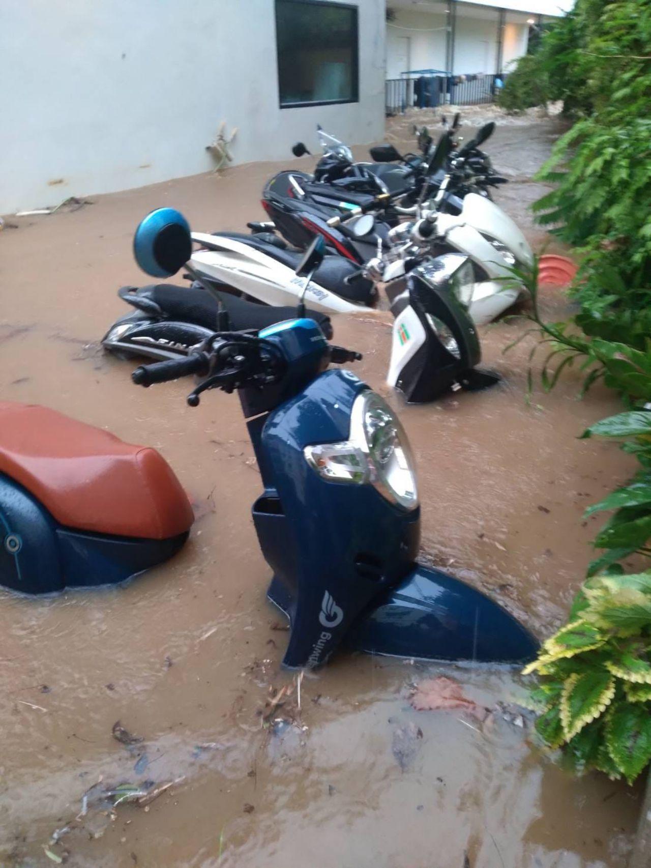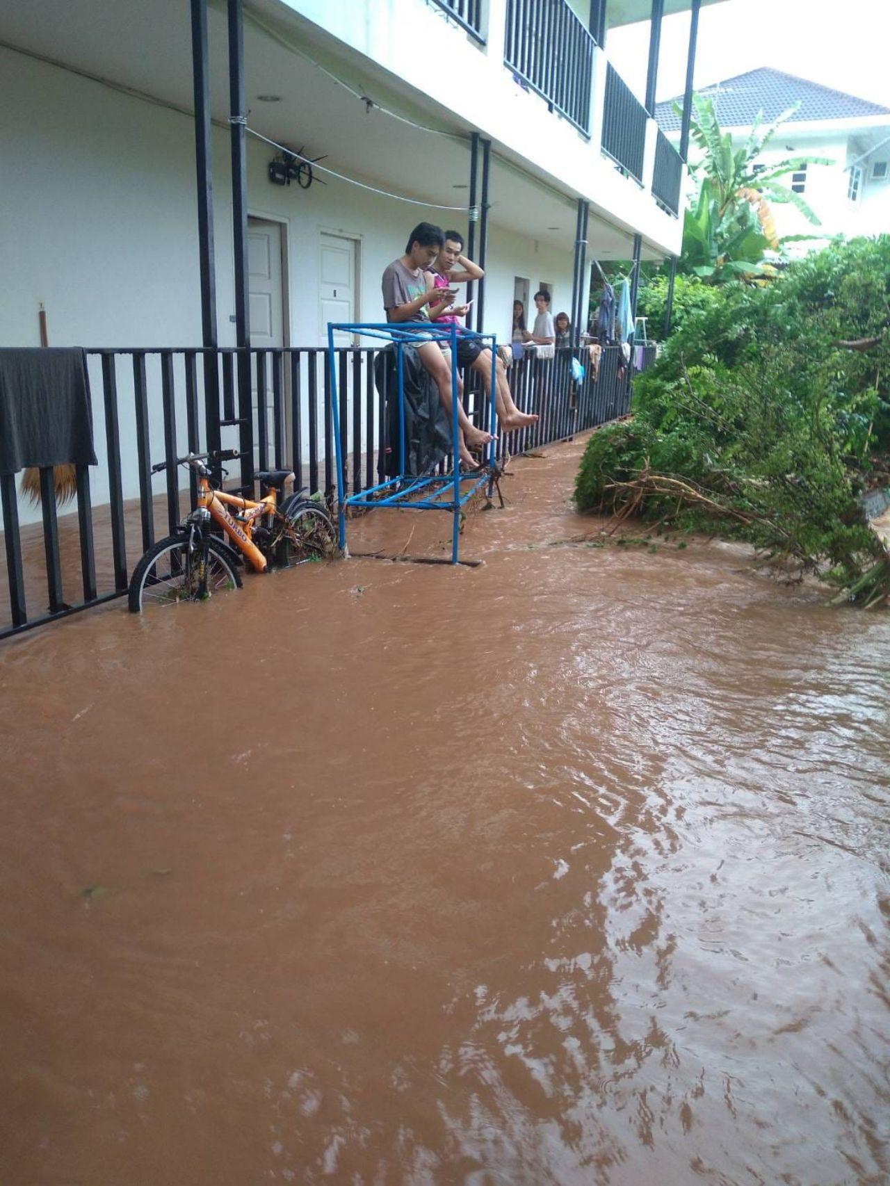 โดยน้ำที่ไหลลงมามีสีแดงขุ่นและไหลเชียวกรากได้ทะลักเข้าท่วมห้องพักชั้น 1 ของหอพักที่มีนักศึกษาพักอยู่ประมาณ 5 ห้อง ระดับน้ำสูงเกือบ 50-60 เซนติเมตร จนนักศึกษาซึ่งกำลังนอนหลับอยู่แตกตื่นและพากันวิ่งหนีเอาตัวรอดออกมาจากหอพัก เพราะน้ำเพิ่มระดับสูงขึ้นอย่างรวดเร็ว จนไม่สามารถเก็บข้าวของได้ทัน นอกจากน้ำไหลทะลักเข้าห้องพักของนักศึกษาจนข้าวของถูกน้ำท่วมได้รับความเสียหาย น้ำยังท่วมรถจักรยานยนต์ของนักศึกษาที่จอดอยู่เสียหายไปหลายคัน