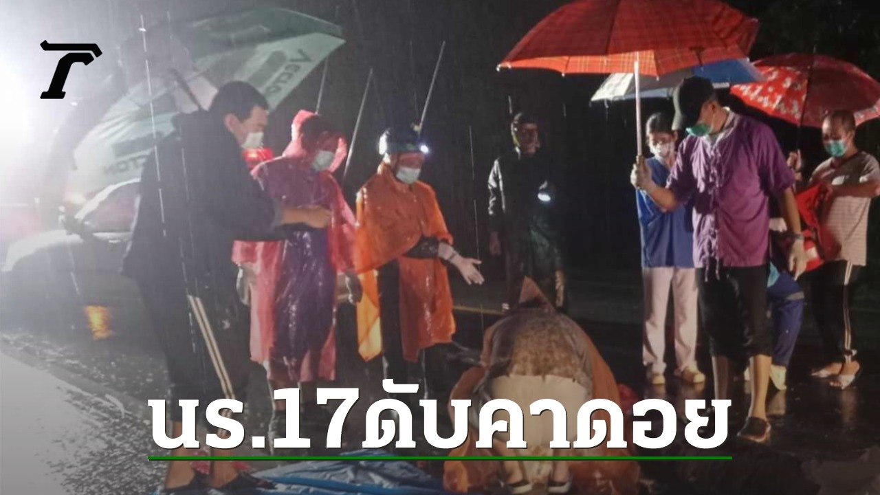 ที่เกิดเหตุมีรถ จยย.ฮอนด้า สีแดง-ดำ ทะเบียน จนจ 64 เชียงใหม่ชนต้นไม้ที่ล้มขวางถนนสภาพด้านหน้าพังยับเยิน มีผู้เสียชีวิต 1 ราย สภาพใบหน้ามีบาดแผลฉกรรจ์ ต่อมาทราบผู้เสียชีวิต จากบัตรประจำตัวประชาชนระบุชื่อ นายโสภณ อายุ 17 ปีเป็นนักเรียนโรงเรียนแห่งหนึ่งใน อ.จอมทอง ภูมิลำเนาหมู่ 5 ต.ช่างเคิ่ง อ.แม่แจ่ม จ.เชียงใหม่ คาดว่าขี่ จยย.มาเจอต้นไม้ล้มขวางถนน แล้วเบรกไม่ทันเนื่องจากถนนเป็นเส้นทางลาดชันบนดอย ทำให้ชนต้นไม้บนถนนจนเสียชีวิต หลังพลิกศพ เจ้าหน้าที่ตำรวจได้มอบให้กู้ชีพฯ นำศพส่ง รพ.จอมทอง เพื่อชันสูตร และรอญาติมารับ