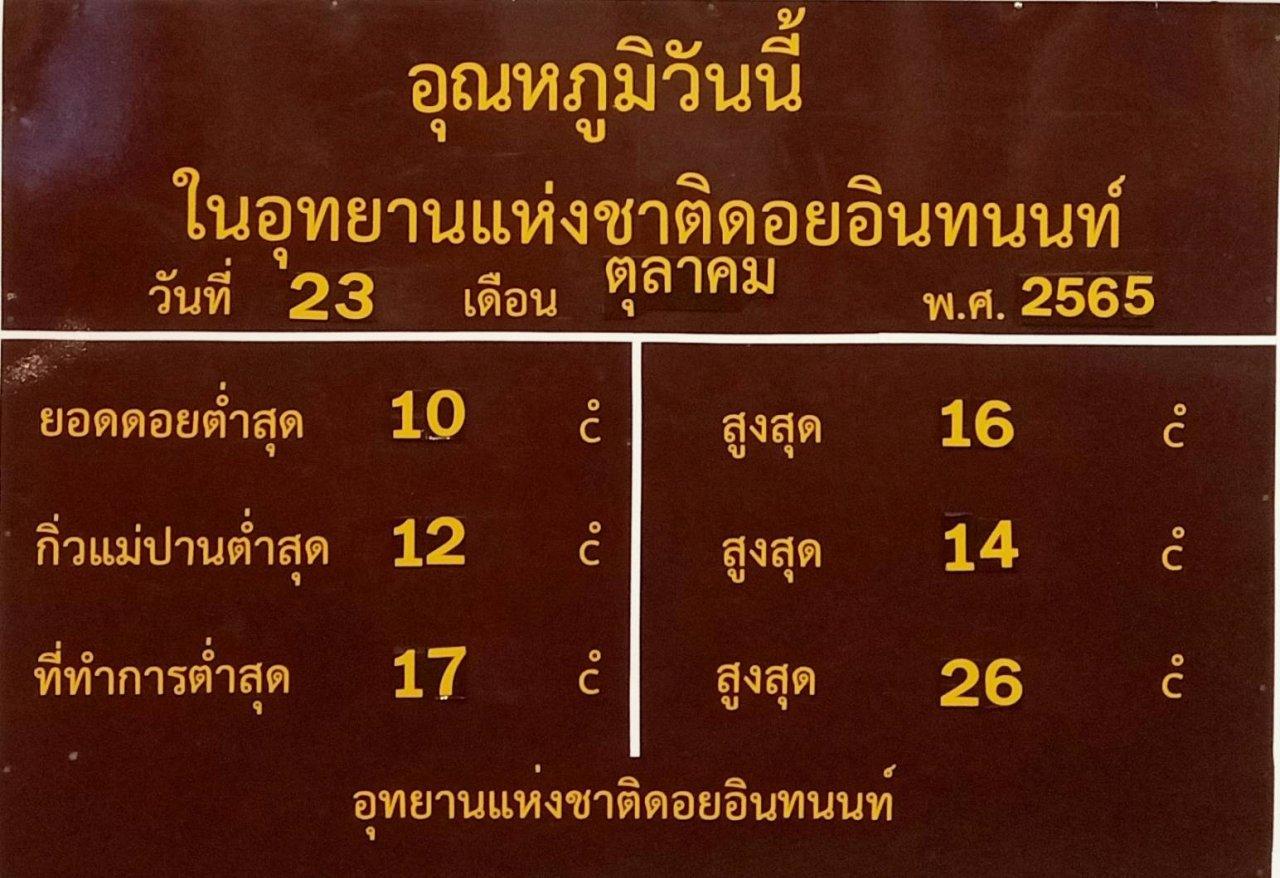 ด้านบรรยากาศบนดอยอินทนนท์ เช้านี้ นายเกรียงไกร ไชยพิเศษ หัวหน้าอุทยานแห่งชาติดอยอินทนนท์ รายงานว่า เช้านี้มีฝนตกสลับกับหมอกลงหนาแน่น แต่นักท่องเที่ยวก็ไม่ย่อท้อช่วงวันหยุดยาวแบบนี้ บางคนก็ขึ้นมาตอนเช้าวันนี้เพื่อจะไปสัมผัสอากาศหนาวที่ยอดดอย กิ่วแม่ปาน ซึ่งเป็นวันที่ 3 แล้วอากาศปิด ไม่สามารถมองเห็นทะเลหมอกหรือพระอาทิตย์ขึ้นยามเช้าได้ อุณหภูมิเช้านี้วัดได้ต่ำสุด ที่ยอดดอย 10 องศาฯ กิ่วแม่ปาน 12 องศาฯ และที่ทำการอุทยาน 17 องศาฯ