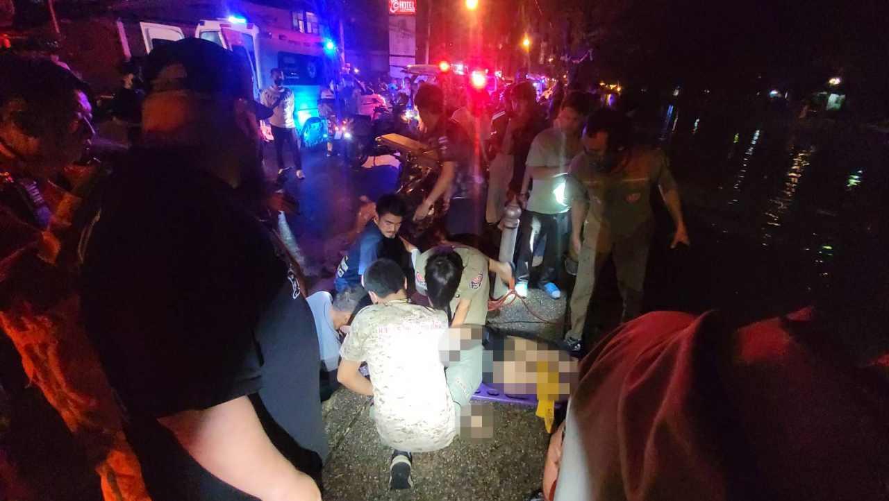 จากการสอบถามผู้ประสบเหตุซึ่งอยู่ในอาการตกใจให้การจับใจความได้ว่า ชื่อ Mr.Dan อายุประมาณ 30 ปี เป็นชาวเดนมาร์ก โดยก่อนเกิดเหตุตนได้ไปดื่มกินปาร์ตี้กับเพื่อนๆ และได้ขับรถกลับบ้านด้วยความเร็ว เมื่อมาถึงที่เกิดเหตุ รถเกิดเสียหลักพุ่งตกลงไปในคูเมือง ตนออกจากรถมาได้ แต่ผู้โดยสารซึ่งอยู่ภายในรถไม่สามารถหนีออกมาได้ ทางทีมประดาน้ำจึงได้ช่วยกันลงค้นหา จนพบร่างผู้หญิง 1 รายอายุประมาณ 40 ปี หมดสติติดอยู่ภายในรถใต้น้ำ จึงได้ช่วยกันนำร่างขึ้นจากน้ำก่อนทำการปั๊มหัวใจ เพื่อทำการช่วยชีวิตและนำส่งโรงพยาบาลอย่างเร่งด่วน