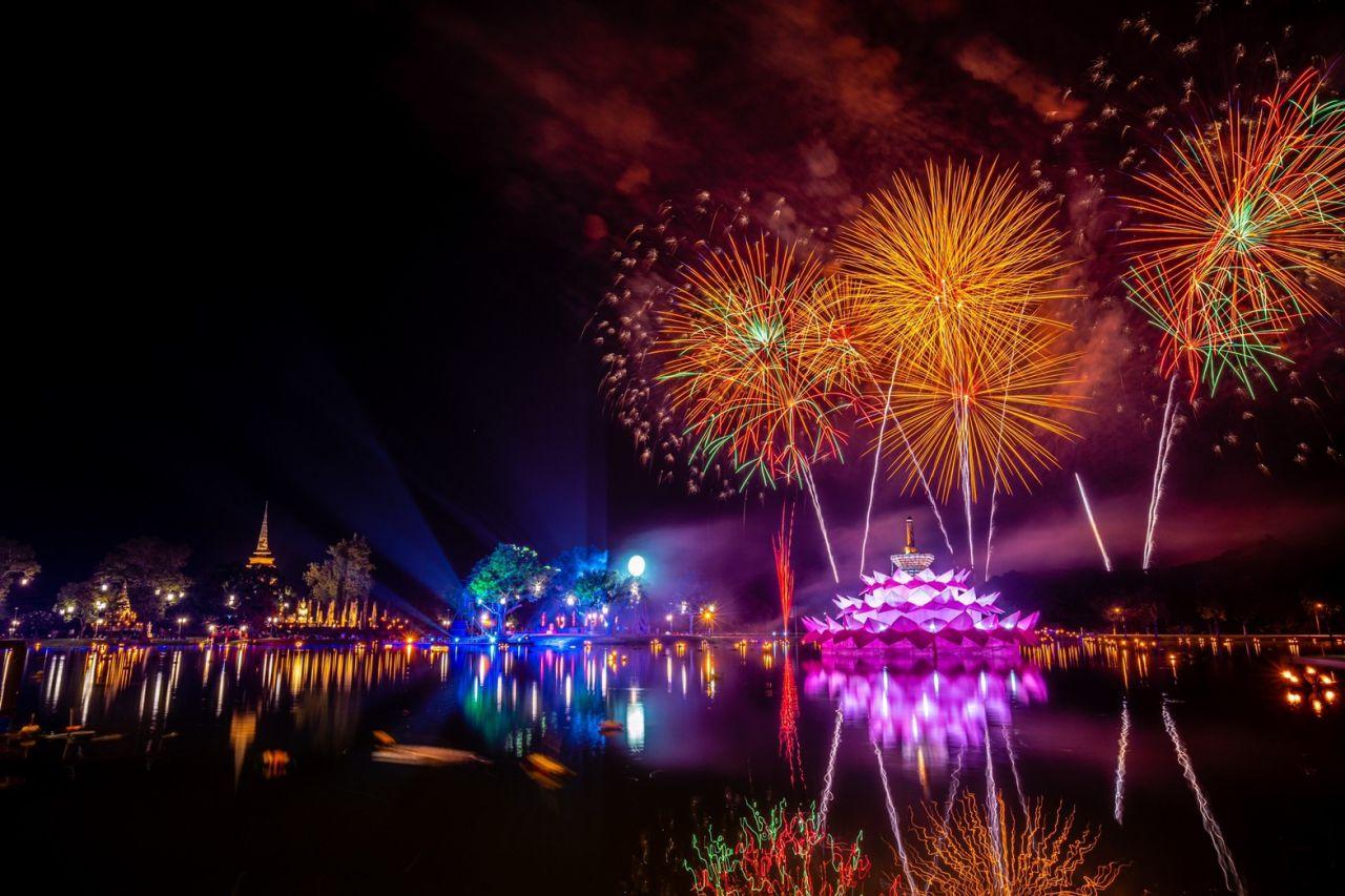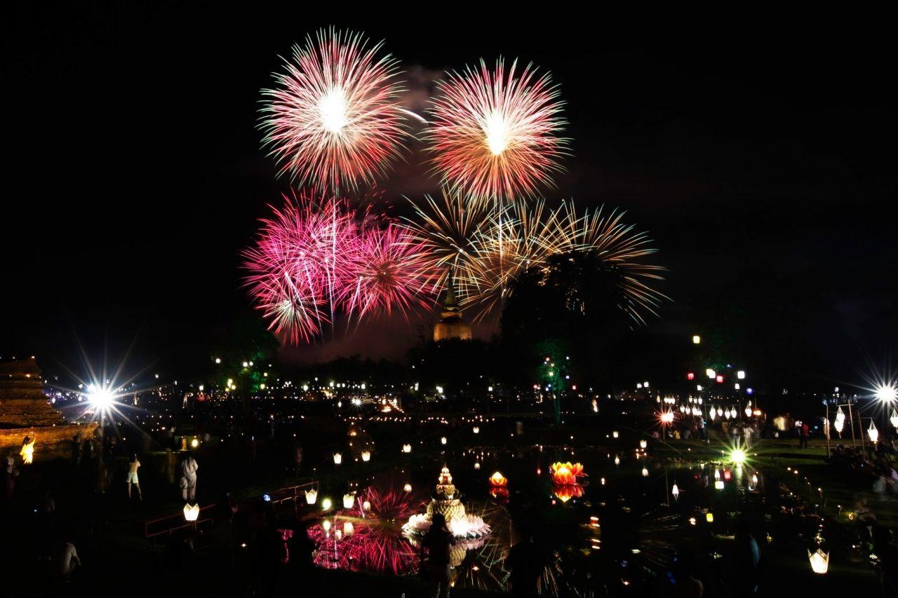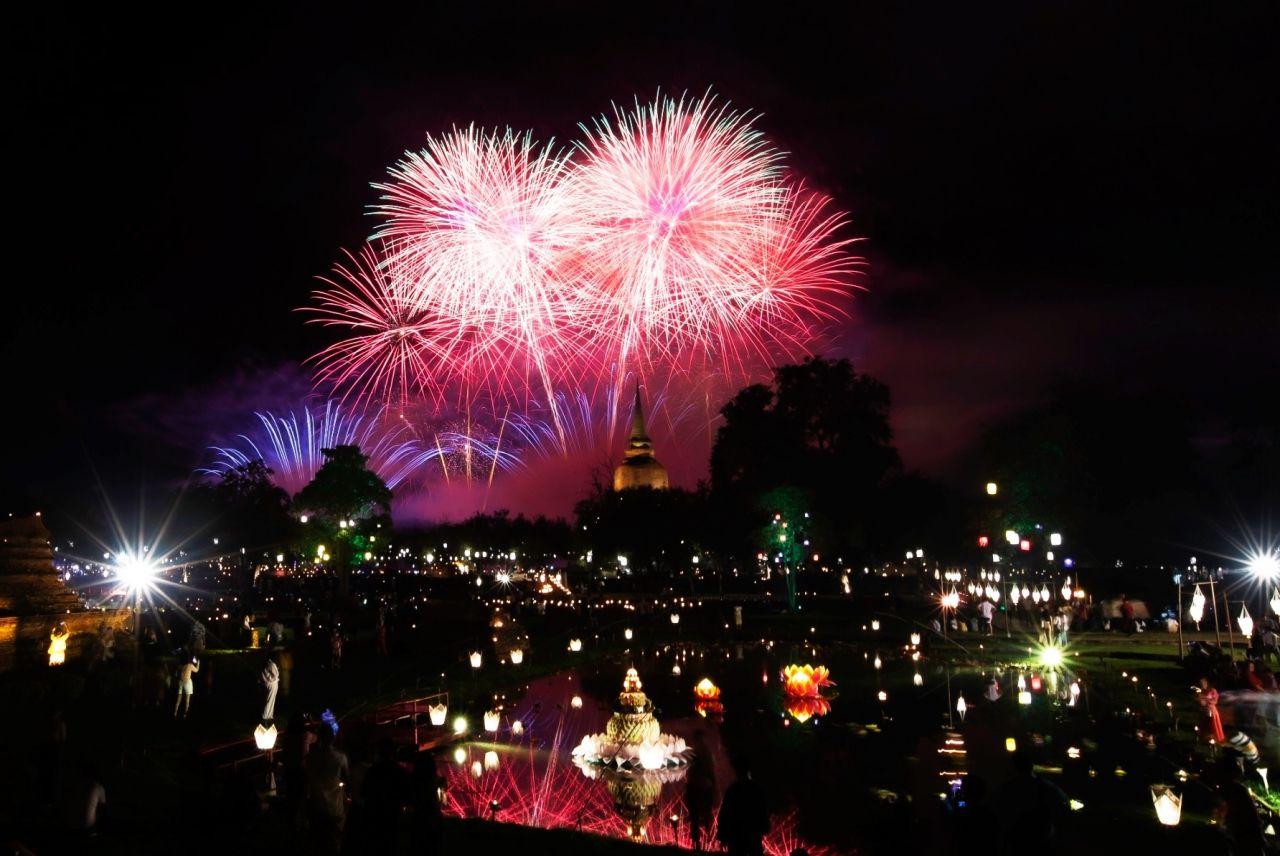 ประชาชนและนักท่องเที่ยวนับหมื่น เข้าชมบรรยากาศย้อนยุคกว่า 700 ปีรวมทั้งการจุดพลุตะไลไฟพะเนียง ในงานประเพณีลอยกระทงเผาเทียนเล่นไฟ ที่อุทยานประวัติศาสตร์สุโขทัย ที่จัดเป็นคืนสุดท้าย
