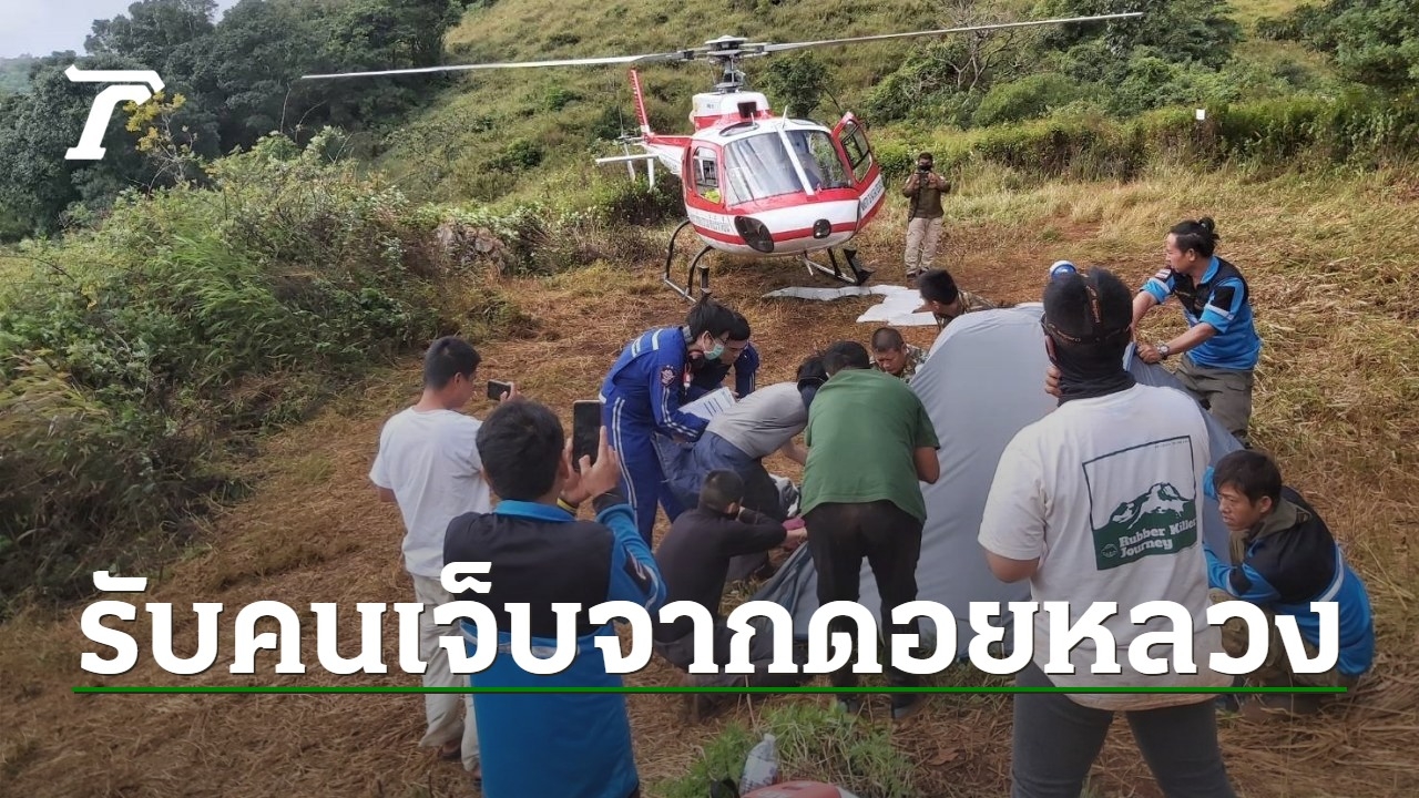 เฮลิคอปเตอร์กระทรวงทรัพยากรฯ กับทีม Sky doctor เข้ารับนักท่องเที่ยวสาวลื่นล้มกระแทกโขดหินเลือดออกในช่องท้อง ขณะไปดูวิวอาทิตย์ตกดินวานนี้ ที่ยอดดอยหลวงเชียงดาว นำส่ง รพ.มหาราชนครเชียงใหม่
