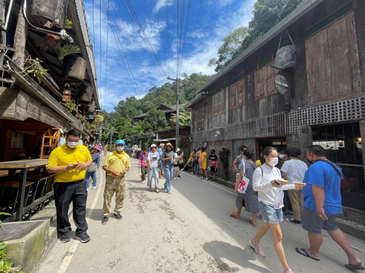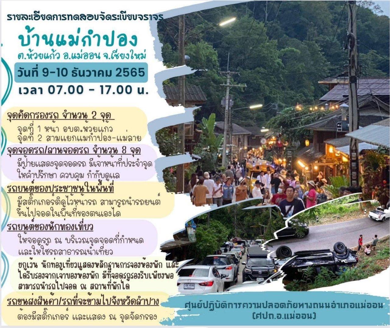 ขณะที่ สถานท่องเที่ยวใน อ.แม่ออน จ.เชียงใหม่ ทางด้าน นายชลิต ทิพย์คำ นายอำเภอแม่ออน กล่าวว่า ที่ผ่านมาได้ช่วยกันพัฒนา เก็บกวาดถนนทางขึ้นไปทางบนเขา ดอยบ้านแม่กำปอง ให้สะอาดตาแก่นักท่องเที่ยว ตามโครงการของจังหวัด ภายใน อ.แม่ออน มีสถานท่องเที่ยวสำคัญๆ มากมายทั้งโบราณสถานประวัติศาสตร์ สถานที่ชื่อดังไปทั่วโลก เช่น "น้ำพุร้อนสันกำแพง" โครงการพระราชดำริฯ บ้านแม่กำปอง อ.แม่ออน มีที่พักโฮมสเตย์ ร้านอาหาร กาแฟบ้านแม่กำปอง บ้านพักข้างบนบ้านแม่กำปอง ไม่ต้องมีแอร์ มีเพียง 2 ฤดู หน้าฝนกับหนาวเท่านั้น ทุกวันให้ทางปลัดความมั่นคง ฝ่ายปกครองท้องถิ่น อส.ไปอำนวยความสะดวกและความปลอดภัยแก่นักเที่ยว ทั้งไทยและต่างประเทศทุกวัน