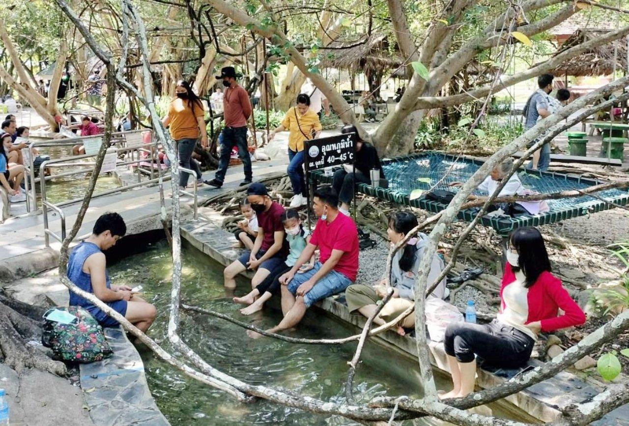 ส่วนที่ภายในน้ำพุร้อนสันกำแพง อ.แม่ออน นายสมควร วงศ์คำแดง รอง ผจก.สถานที่ กล่าวว่า ที่ผ่านมาได้มีนักท่องเที่ยวมาพักผ่อนกันมากทุกวัน ในวันหยุดมีนักท่องเที่ยวเยอะมาก ยิ่งใกล้สิ้นปีมีนักท่องเที่ยวมาจองที่พักกันมากแล้ว ในน้ำพุร้อนสันกำแพง มีทั้งหมด 76 ไร่ ที่ห้องพัก 18 ห้อง เต็นท์อีกจำนวนมาก และนักท่องเที่ยวสามารถเอาเต็นท์มาเองได้ มีที่อาบน้ำแร่ธรรมชาติ สระวายน้ำ ที่ต้มไข่ น้ำพุร้อนพุขึ้นถึง 12 เมตร มีสวนดอกไม้ ที่แช่เท้าเพื่อสุขภาพ ห้องประชุม ส่วนสิ้นปี 2566 เพื่อรับบรรยากาศหนาวเย็นในน้ำพุร้อนสันกำแพงในวันหยุดยาว มีจุดกางเต็นท์ที่สนามน้ำพุร้อนสันกำแพงแห่งนี้เพื่อนอนรอเคาต์ดาวน์ส่งท้ายปีเก่าต้อนรับปีใหม่กันอย่างสนุกสนาน