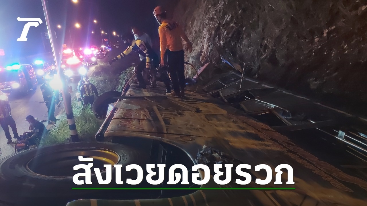 "รถบัสโดยสาร" ขน 47 ชีวิต ขับลงดอยรวก คนขับไม่ชำนาญ-เหยียบเบรกจนลมหมด พุ่งลงเขาชนแบริเออร์ เหินตกร่องน้ำพลิกคว่ำ บาดเจ็บ 44 ตาย 3 ศพ